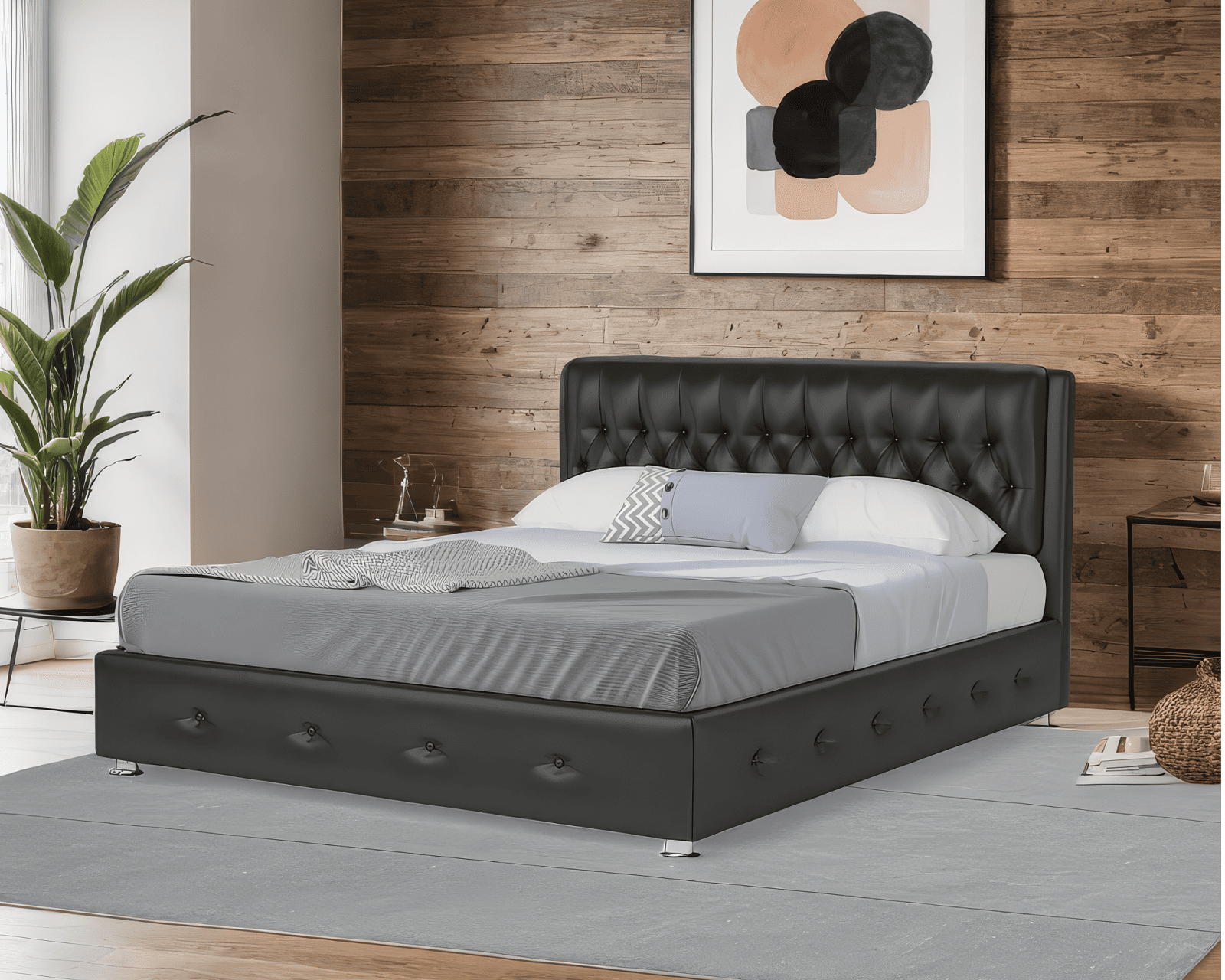 Обивка из экокожи приятна на ощупь, гипоаллергенна и хорошо пропускает воздух, создавая комфортное микроклимат в спальной зоне.