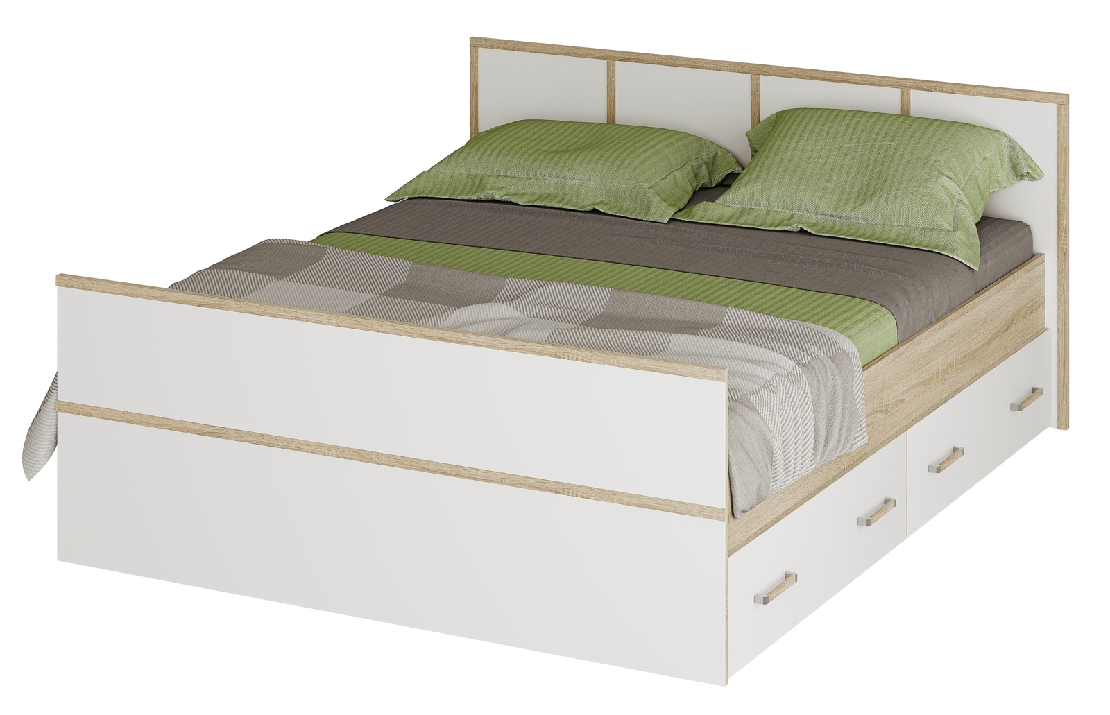 Сакура Кровать на 160 Основание проложки ДСП (Дуб Сонома, Белый)