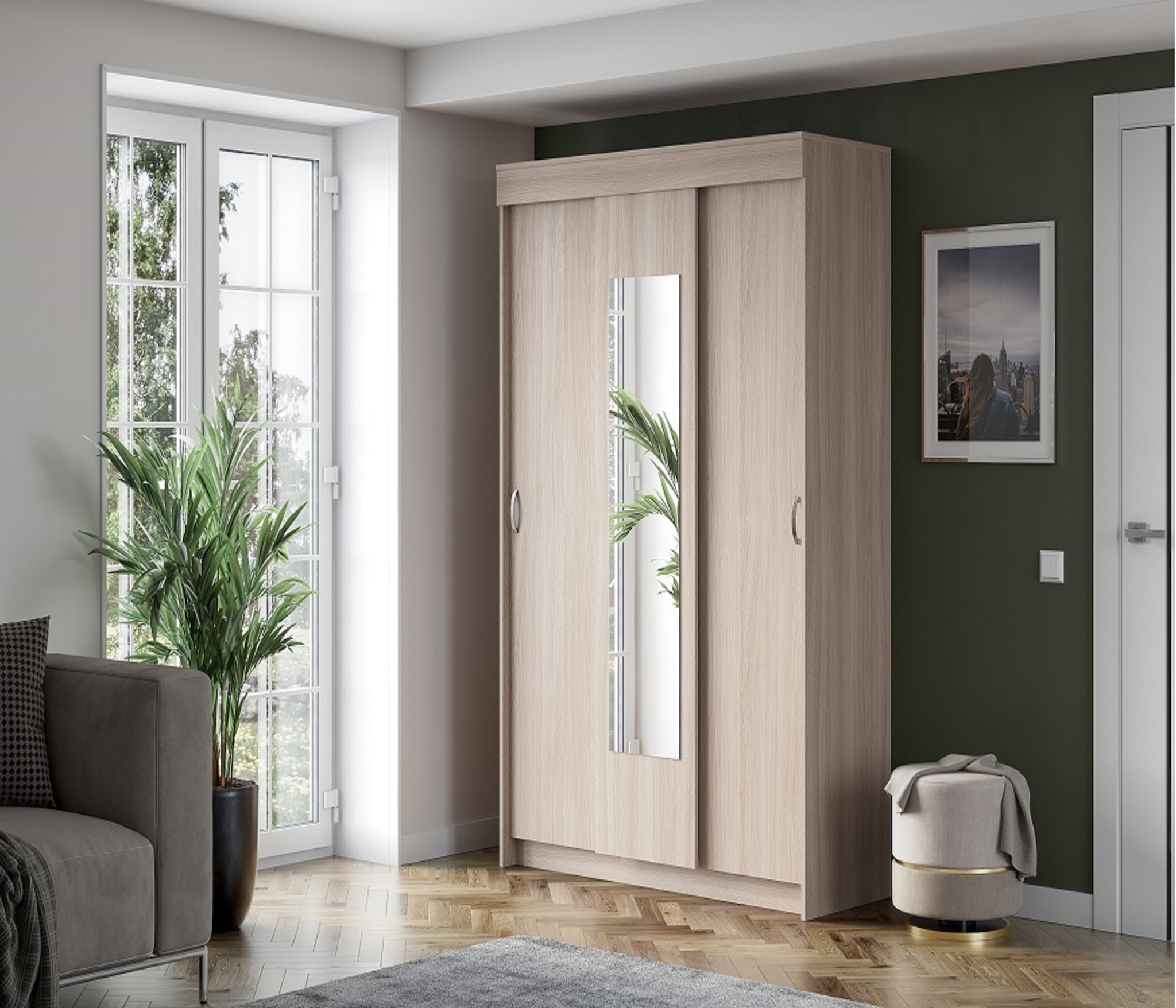 Очень приличный шкаф, хорошо смотрится. Но есть одна недоработка - отделение с полками шире, чем дверь. Соответственно, при полностью отодвинутой двери небольшая часть отделения с полками остается закрытой. Этот конструктивный дефект не мешает пользоваться шкафом. За такую цену - отличный шкаф.