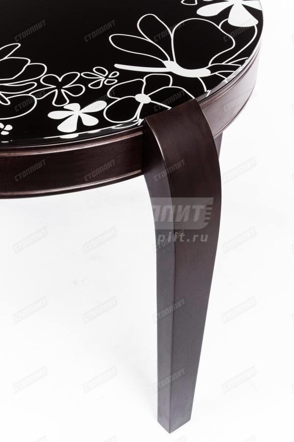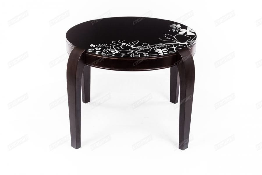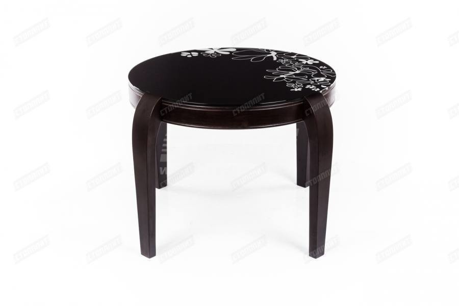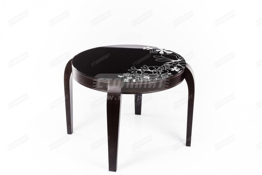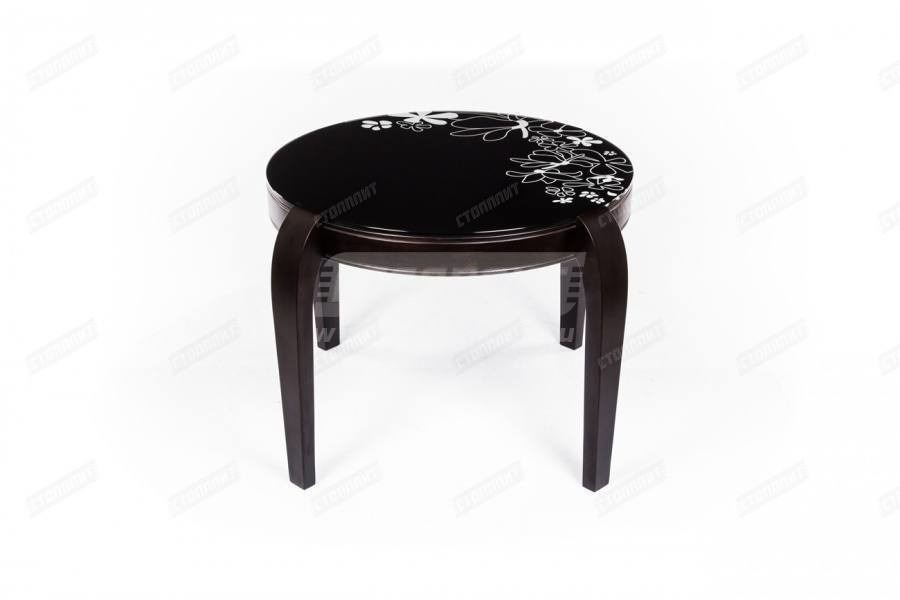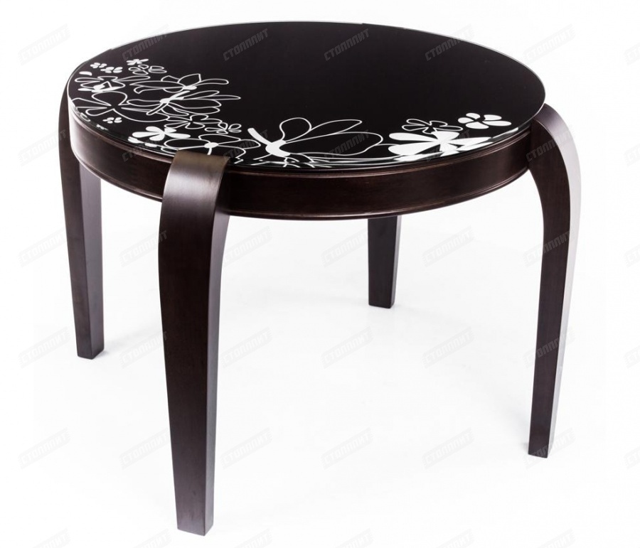 Стильный журнальный стол станет незаменимым предметом вашей гостиной. Материал каркаса массив гевеи Материал столешницы массив гевеиЦвет столешницы черный с цветамиПокрытие столешницы стекло с рисункомДиаметр столешницы 66 смДиаметр столы с ножками 82 см