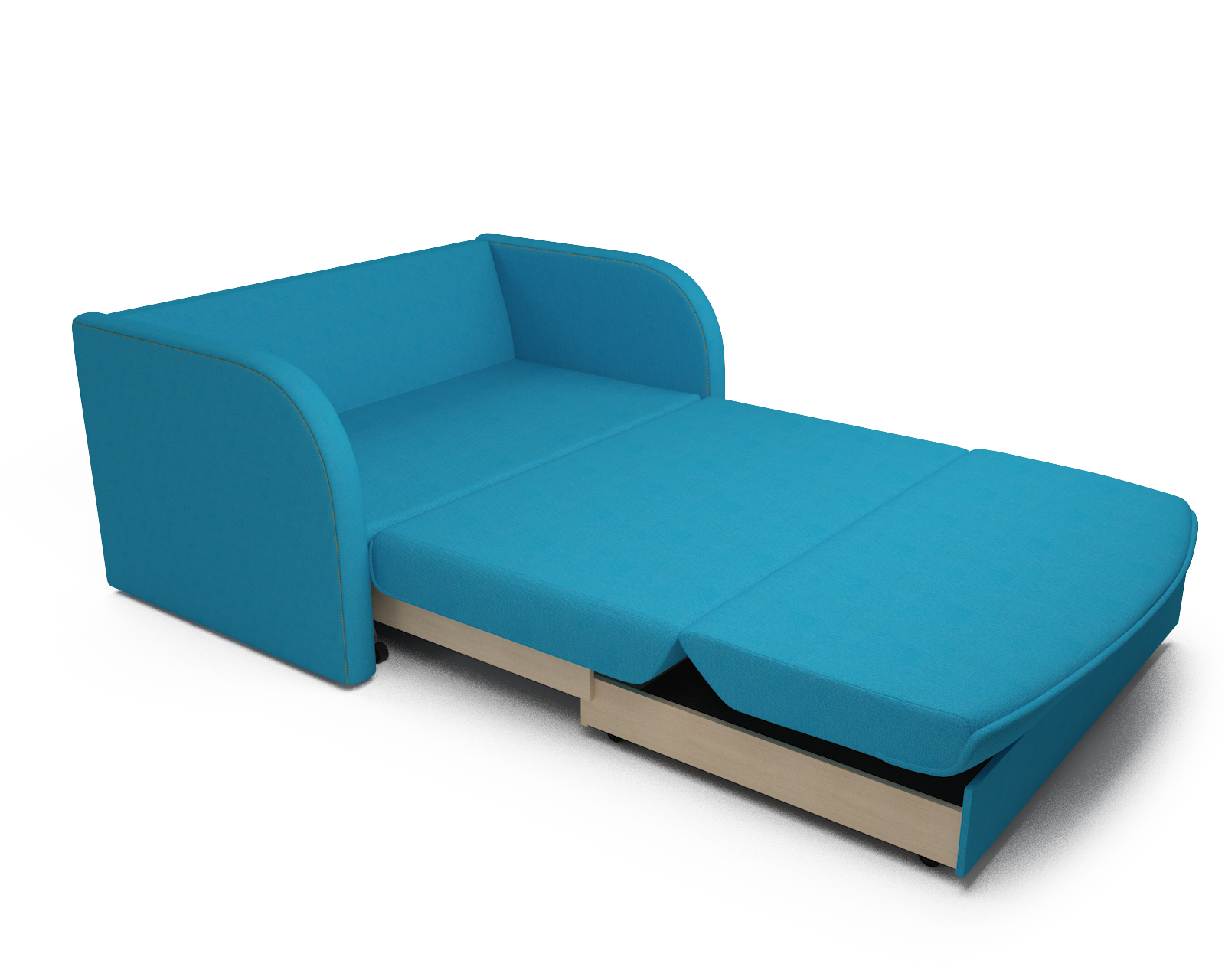 Выкатной механизм позволяет дивану «Малютка» легко переключаться между зоной отдыха и местом для сна. Частое раскладывание дивана в спальное место не портит механизм. Пластиковые ножки не царапают пол.