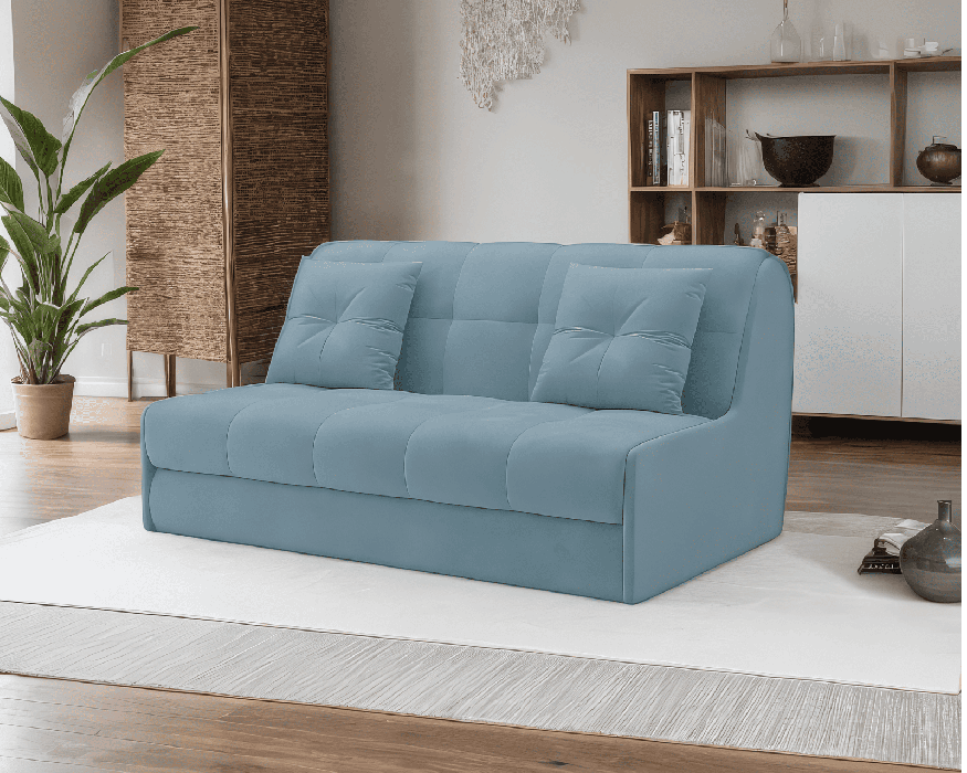 Диван прямой аккордеон Барон №2 (Велюр) (Голубой) Код I0000385197