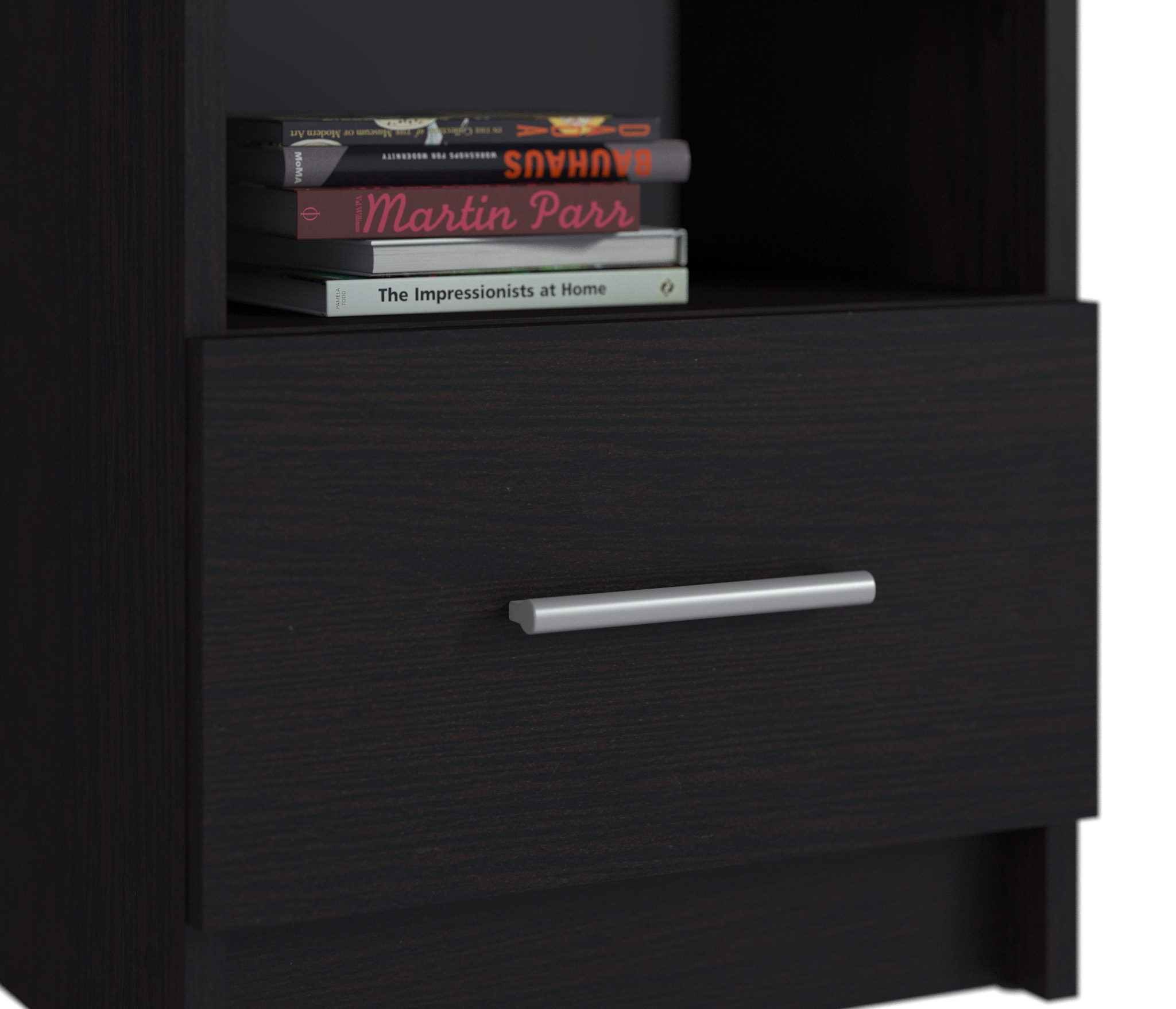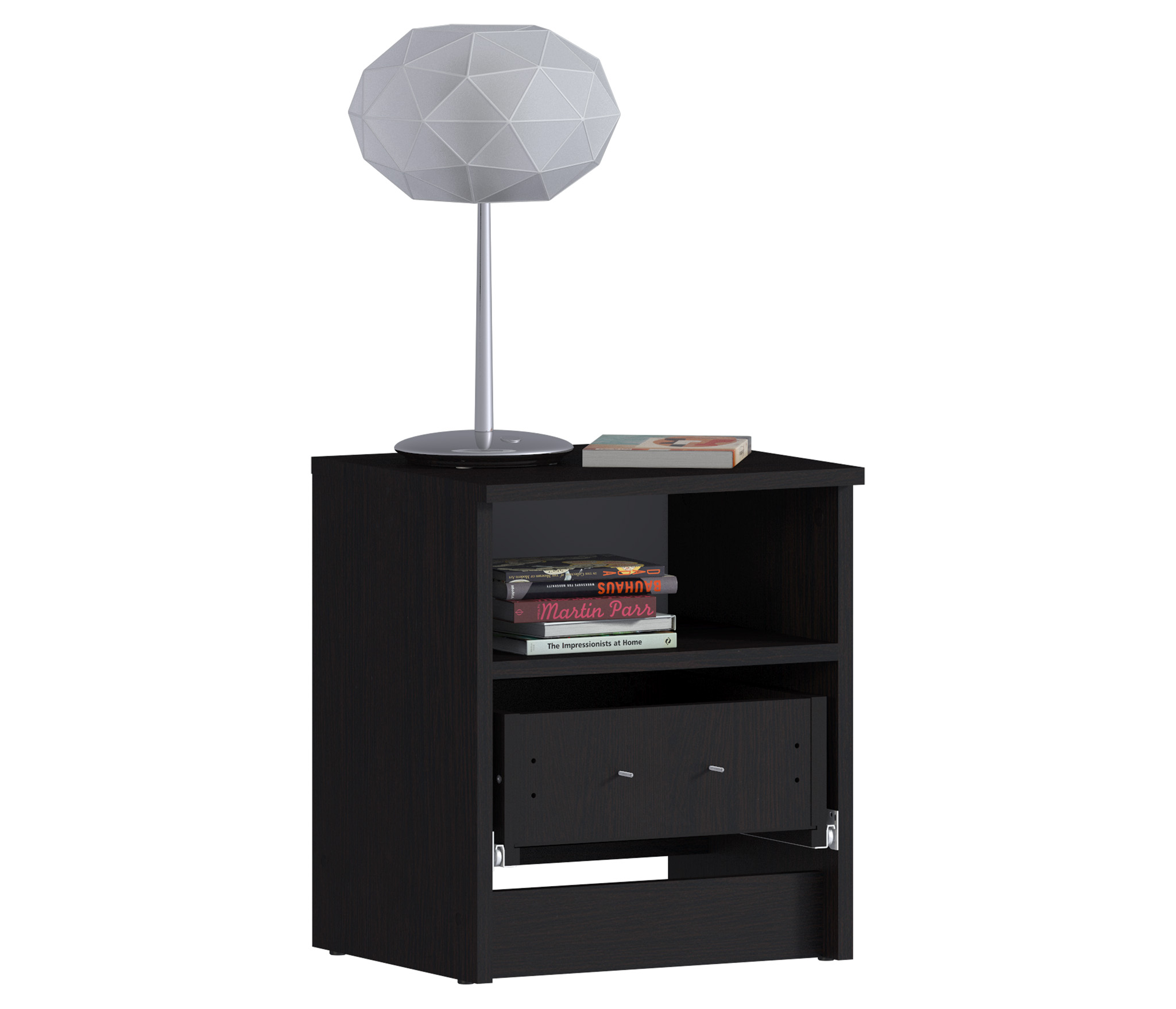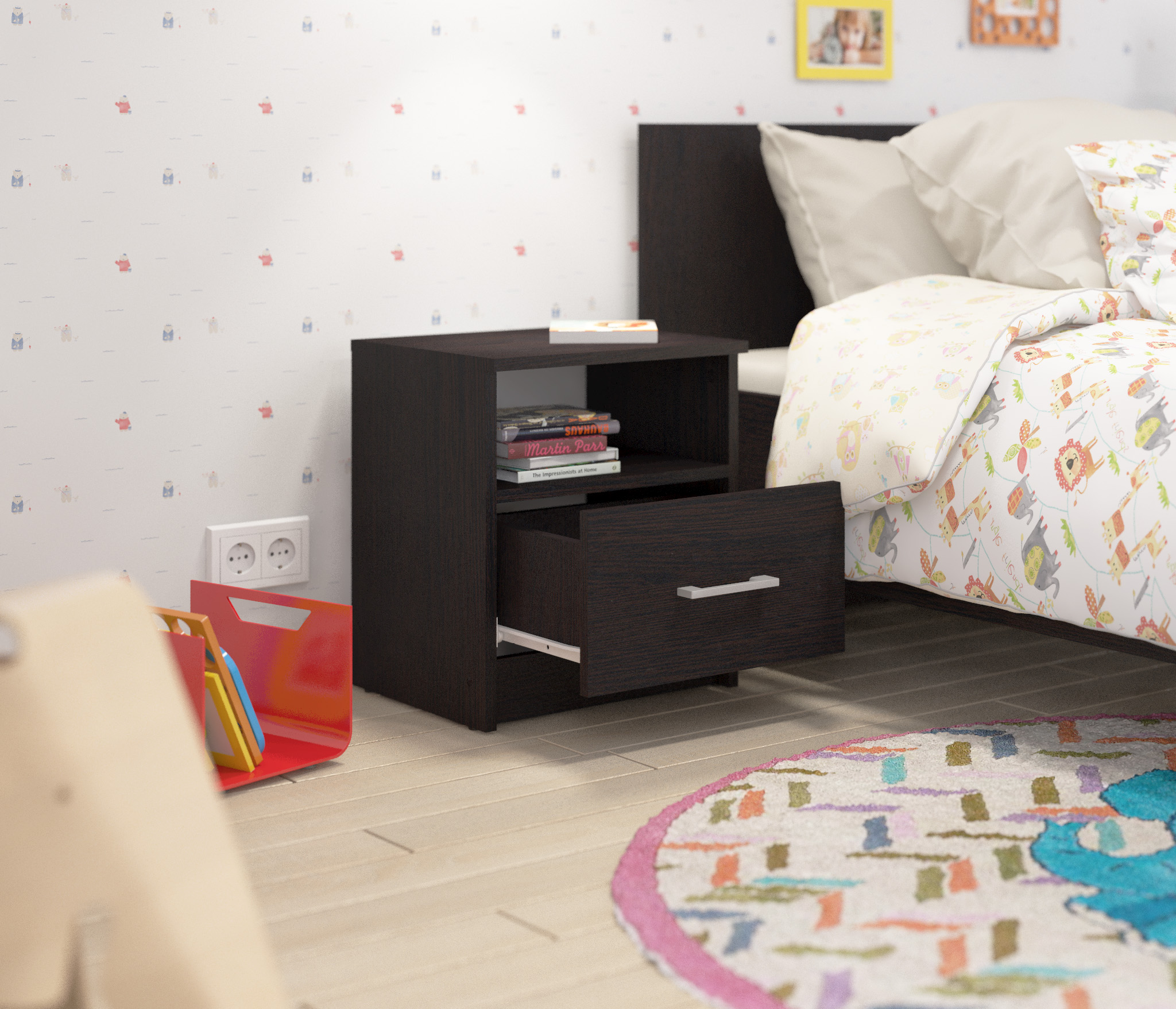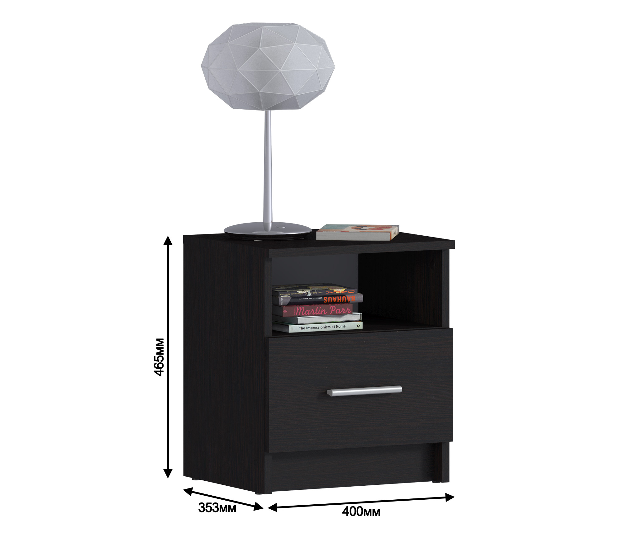 При компактных габаритных размерах – ширина 40 см, высота 46 см и глубина 35 см, тумба довольно вместительная. Под столешницей расположены открытая полка и выдвижной ящик, где можно хранить вещи. Произведена тумба Терра из современного и прочного ДСП.