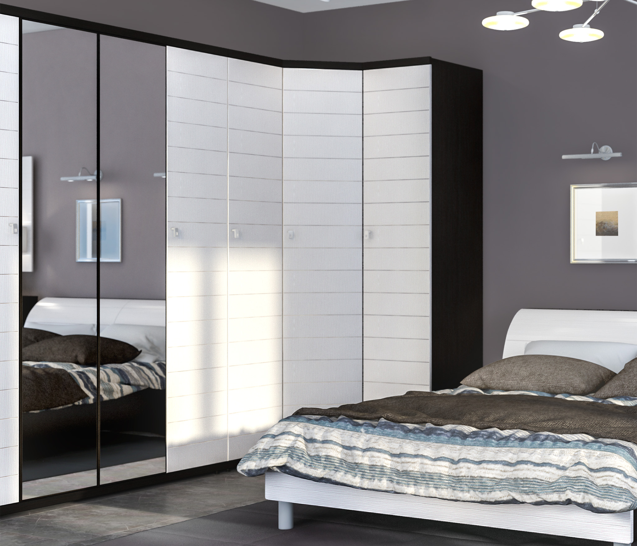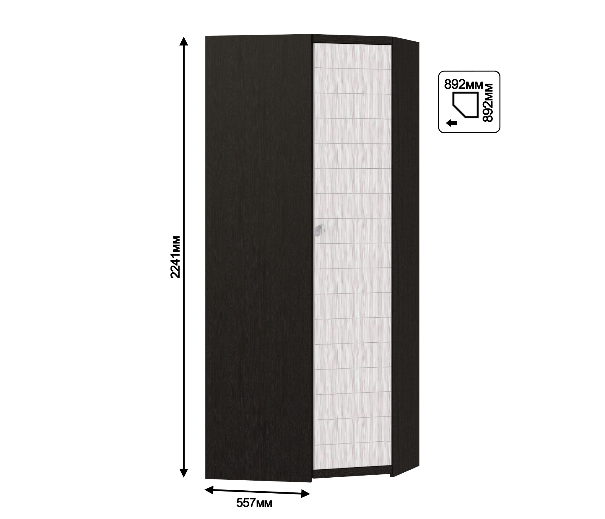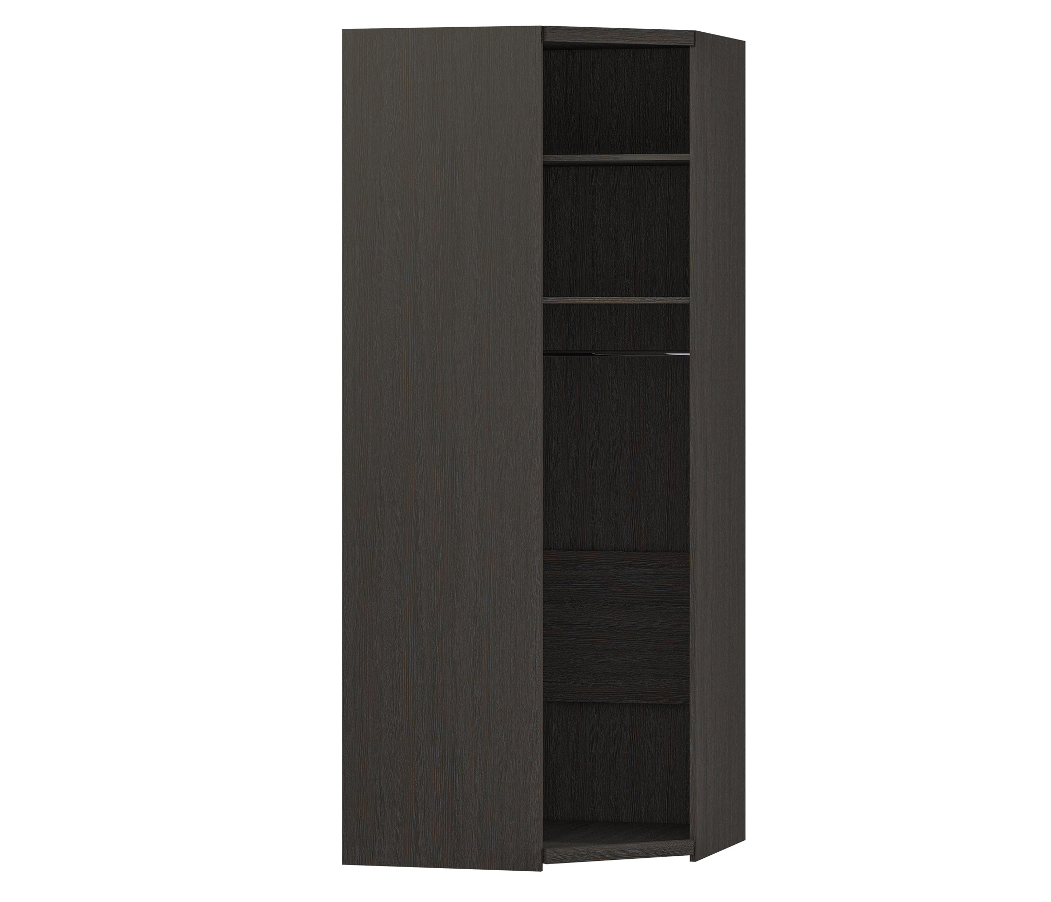 Стильный угловой шкаф для одежды. Он не занимает много места, но отличается значительной вместительностью. У шкафа лаконичный современный дизайн.