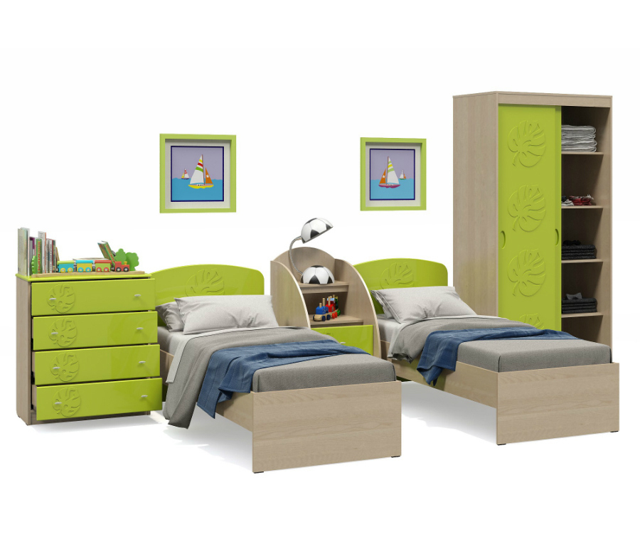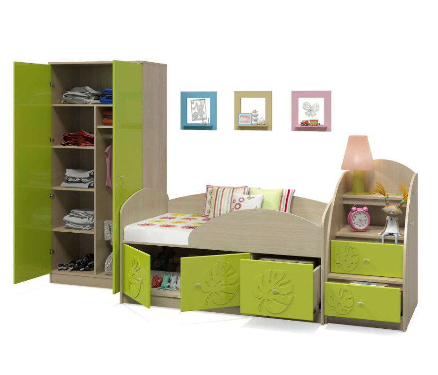 Маугли МДМ-1 Кровать (Клен ванкувер/Лайм глянец)