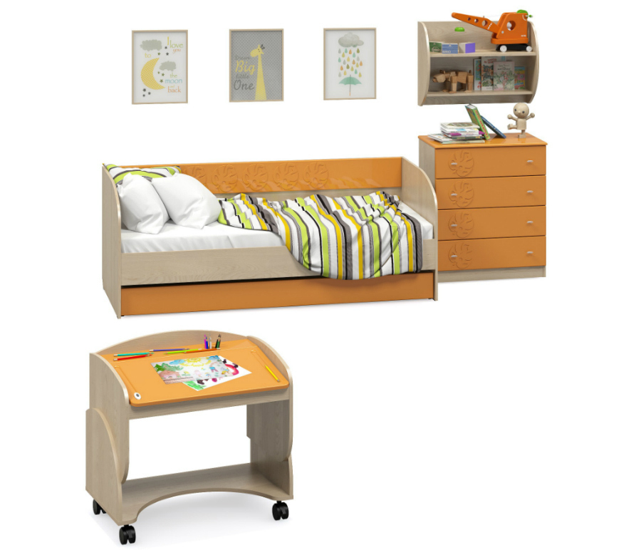 Маугли МДМ-1 Кровать (Клен ванкувер/оранж глянец)