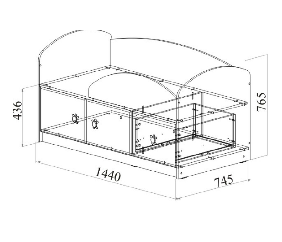 Кровать МДМ-1 из детской Маугли можно - это компактная и практичная кровать для ребенка. У кровати предусмотрено три выдвижных вместительных ящика, которые можно использовать для хранения игрушек, одежды и постельного белья.Кровать необходимо доукомплектовать матрасом. Спальное место: 1400 х 700 мм.