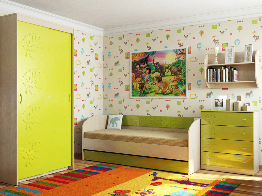 Маугли МДМ-12 кровать (Клен ванкувер/Лайм глянец)