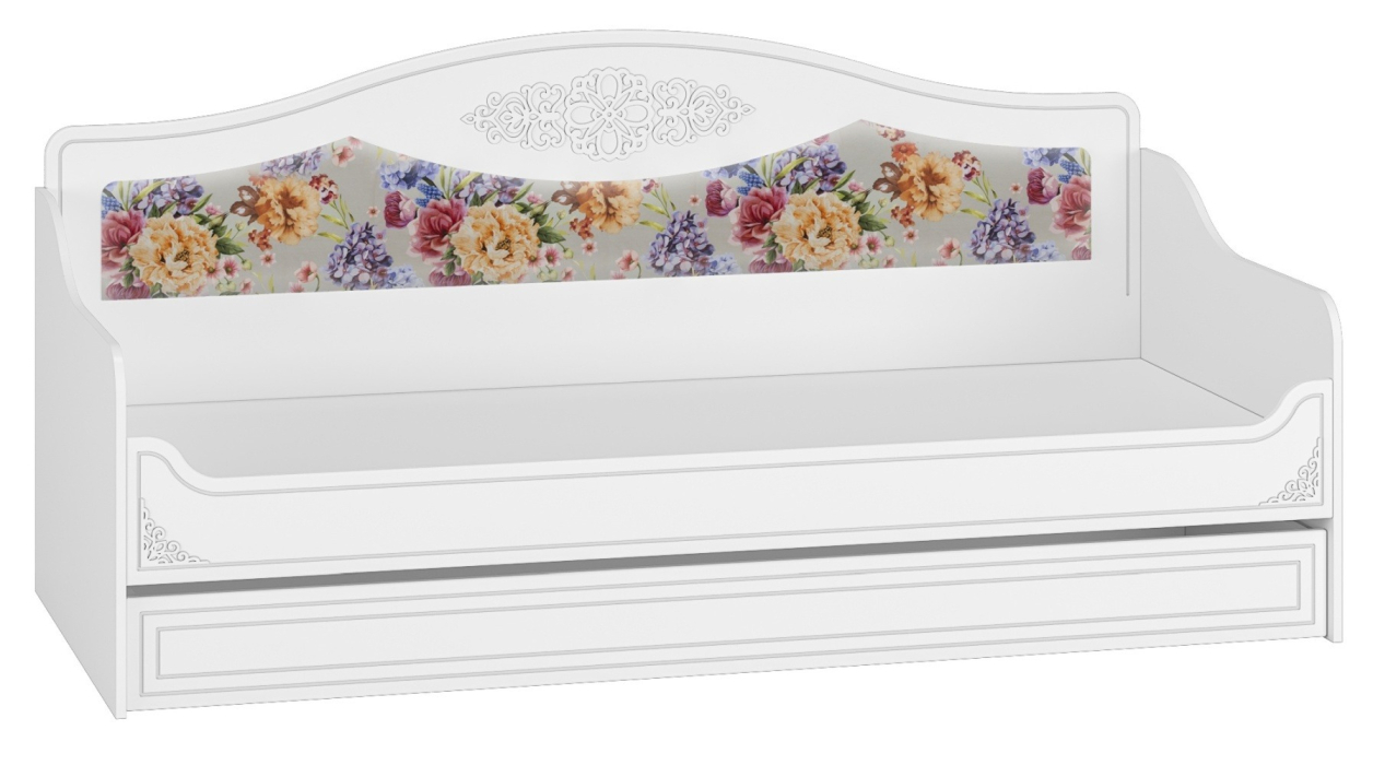 Кровать с мягкой спинкой, выдвижной ящик для белья. Основание кровати выполнено из ДСП. Мебель изготовлена из качественной ламинированной ДСП 16 мм. В оформлении фасадов МДФ применяется уникальная технология нанесения объемного узора (3-D). В цоколи встроены подпятники, предотвращающие повреждение пола.