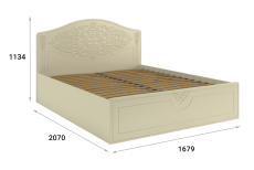 Кровать оснащена подъемным механизмом, обеспечивающим доступ в короб для хранения постельного белья.С двуспальной кроватью идеально подходит банкетка АС-34 для размещения рядом (в ногах).