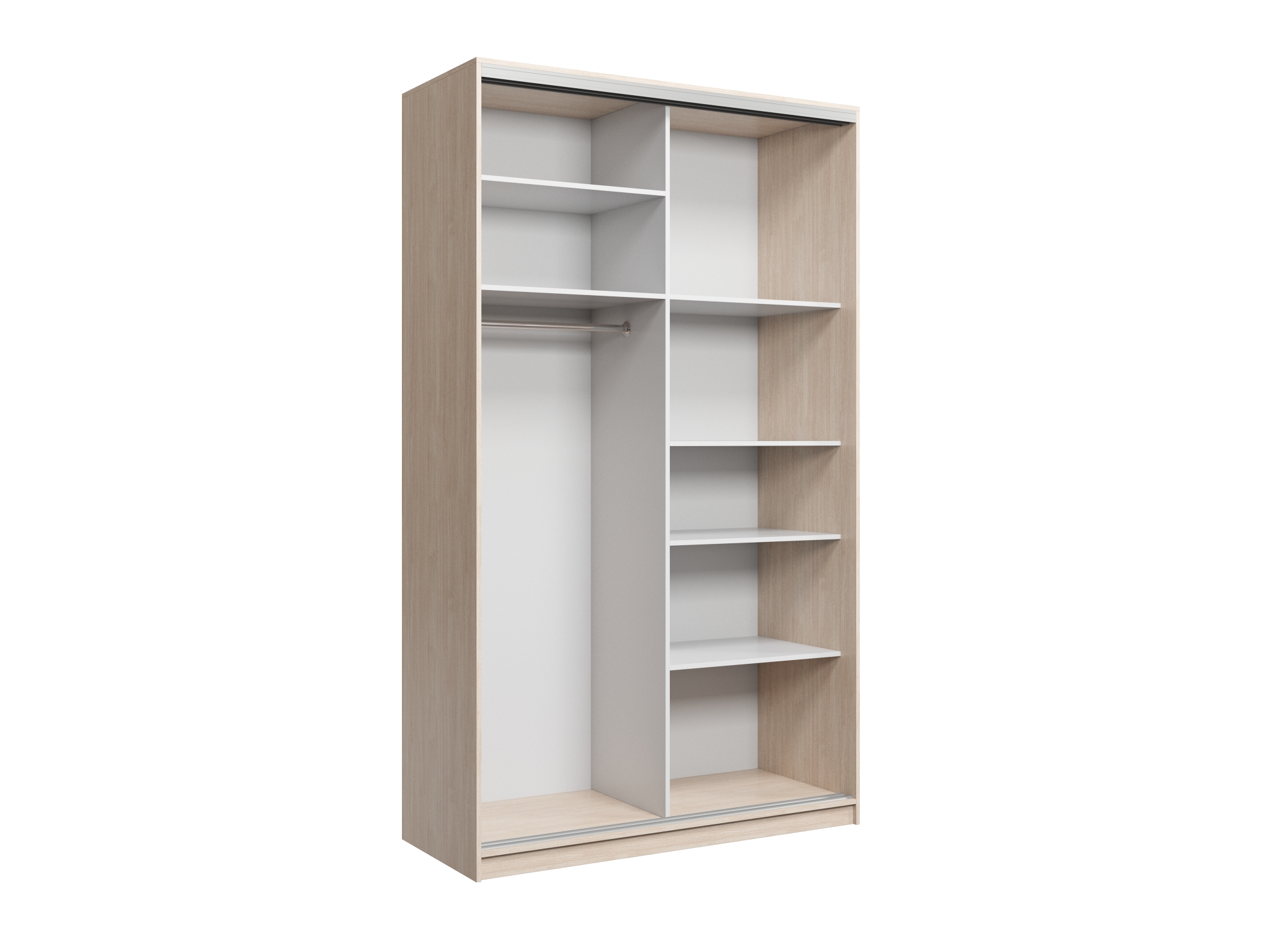 Шкаф купе Айсберг является одной из самых продаваемых моделей.Внутреннее пространство, включает в себя большое количество разных полок и отделение с штангой для вешалок. Модель выполнена из качественного ЛДСП толщиной 16 мм. а современная фурнитура, придает абсолютно тихий ход дверям.
