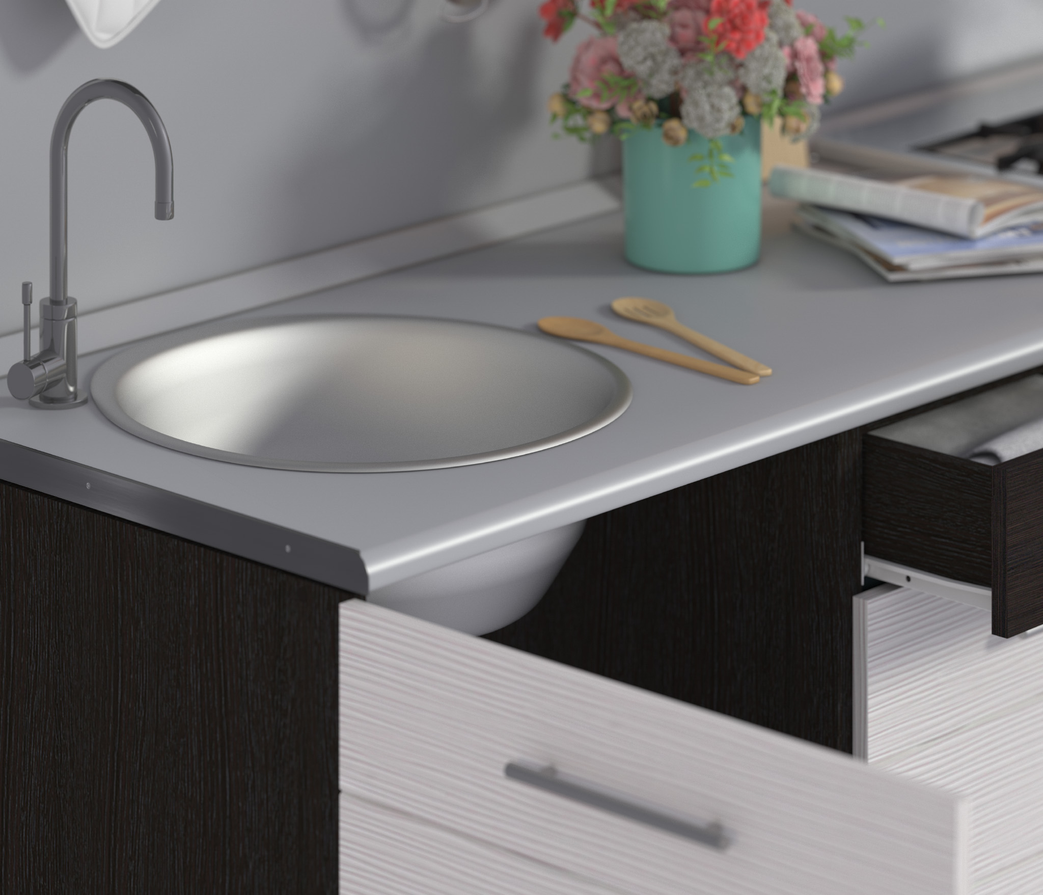 - Мойка круглая врезная, d 51 см;
