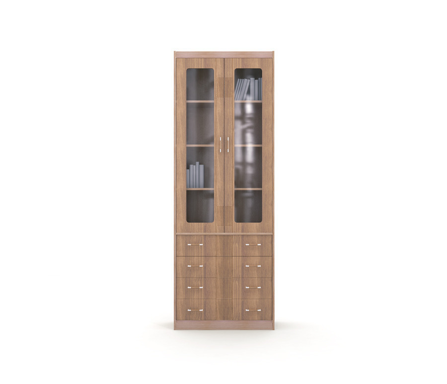 Габаритные размеры шкафа-витрины довольно приличные – ширина 80 см, высота 221 см и глубина 34 см, это довольно вместительный шкаф-витрина, который позволит решить вопросы, связанные с хранением памятных вещей. Визуально шкаф-витрину Сити СБ-212 можно разделить на два отделения. Верхнее – выставочное с прозрачными дверцами и нижнее с четырьмя вместительными ящиками.
