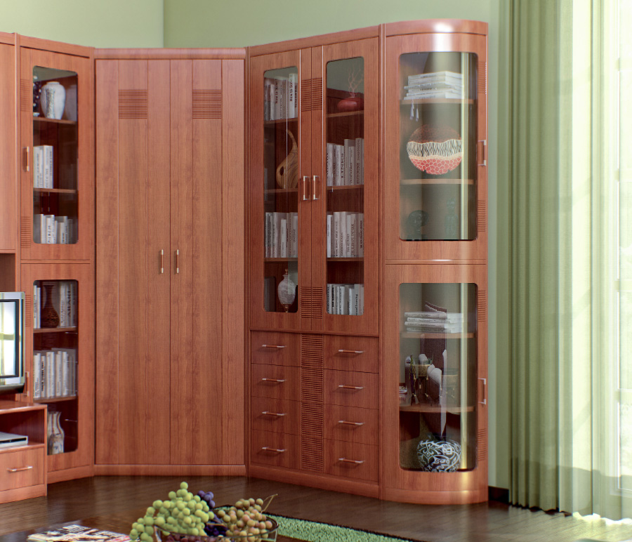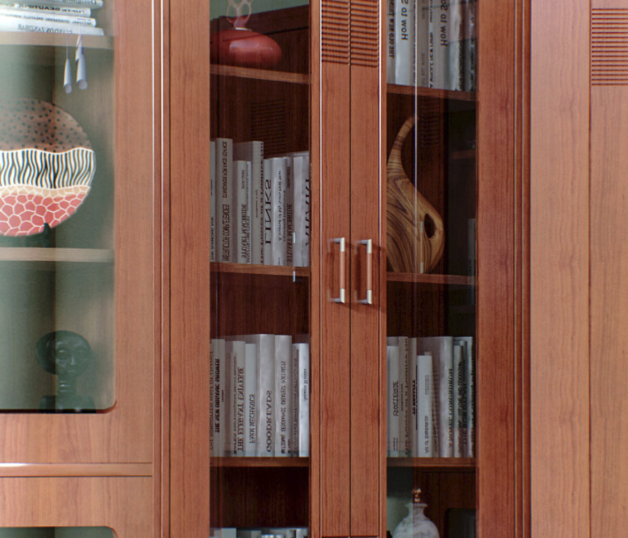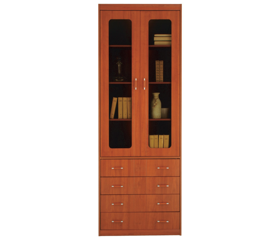 Габаритные размеры шкафа-витрины довольно приличные – ширина 80 см, высота 221 см и глубина 34 см, это довольно вместительный шкаф-витрина, который позволит решить вопросы, связанные с хранением памятных вещей. Визуально шкаф-витрину Сити СБ-212 можно разделить на два отделения. Верхнее – выставочное с прозрачными дверцами и нижнее с четырьмя вместительными ящиками.