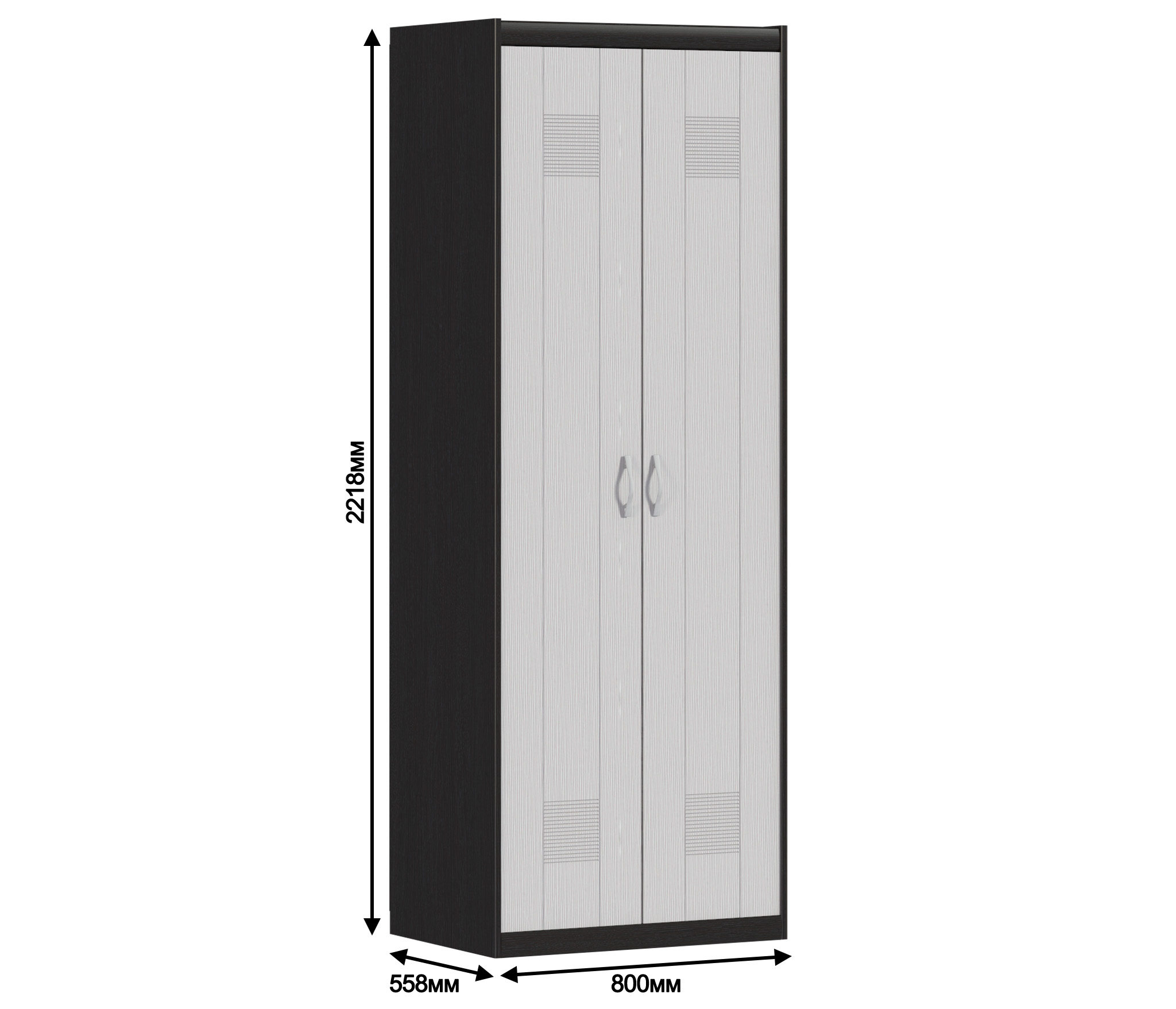 Двухдверный шкаф Сити СБ-217 – компактное решение вопроса, связанного с хранением вещей. Благодаря минималистичному дизайну, шкаф Сити СБ-217 можно разместить на небольшой площади в прихожей, детской комнате или офисе. Он может быть отдельным предметом мебели, а также частью гарнитура.¶Шкаф имеет одно вместительное плательное отделение со штангой, над которым расположена антресоль. Габаритные размеры шкафа – ширина 80 см, высота 221 см и глубина 55 см.