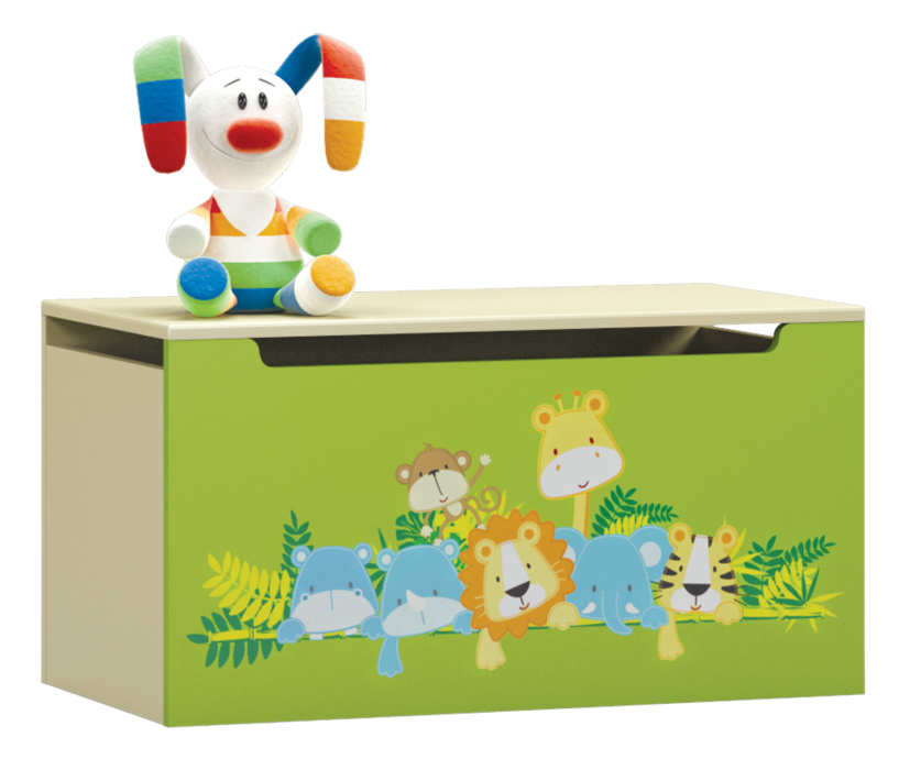 Вместительный, гидролифт для поднятия крышки, выдерживает сидящего на нем взрослого, брали серию тропик- приятный насыщенный зеленый цвет, милые зверушки на картинке