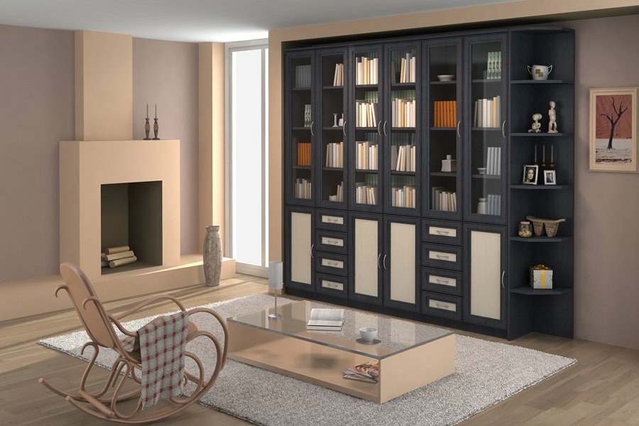Шкаф для книг с ящиками узкий арт. 205 (Венге/Дуб молочный)