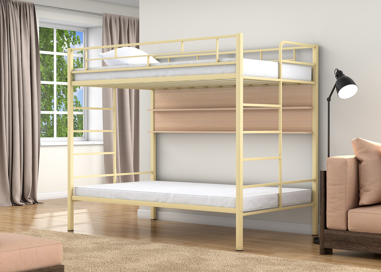 надежный каркас и прослужить может в разы дольше. Каждое спальное место выдерживает большой вес, что тоже в плюс.Полка дает возможность все положить рядом, а не вставать и бегать каждый раз будильник отключить или книгу взять. Очень удобная во всех отношениях