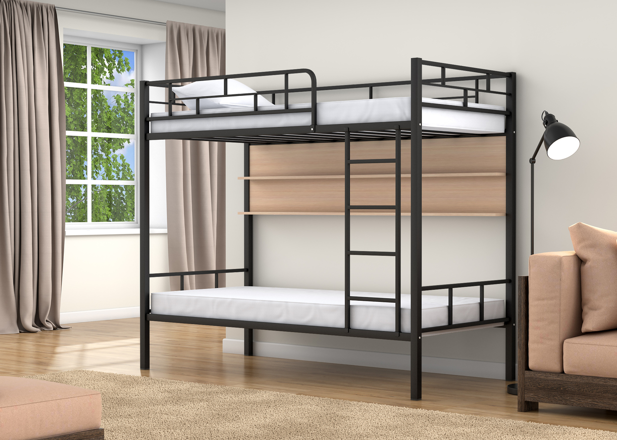 решает все вопросы с нужными под рукой вещами. Очень практичный вариант и не такой дорогой. Детям нравится, что в течении дня можно набросать подушек и пользоваться как диваном, мне нравится, что безопасная,не смотря на то, что металл. Еще нравится, что лестница спереди, и может устанавливаться и справа и слева.
