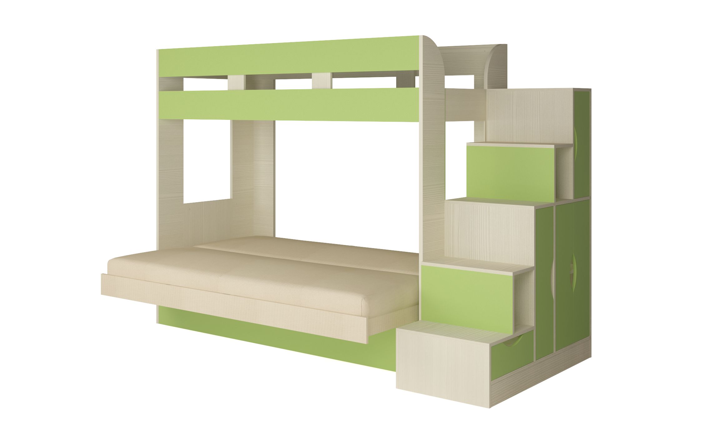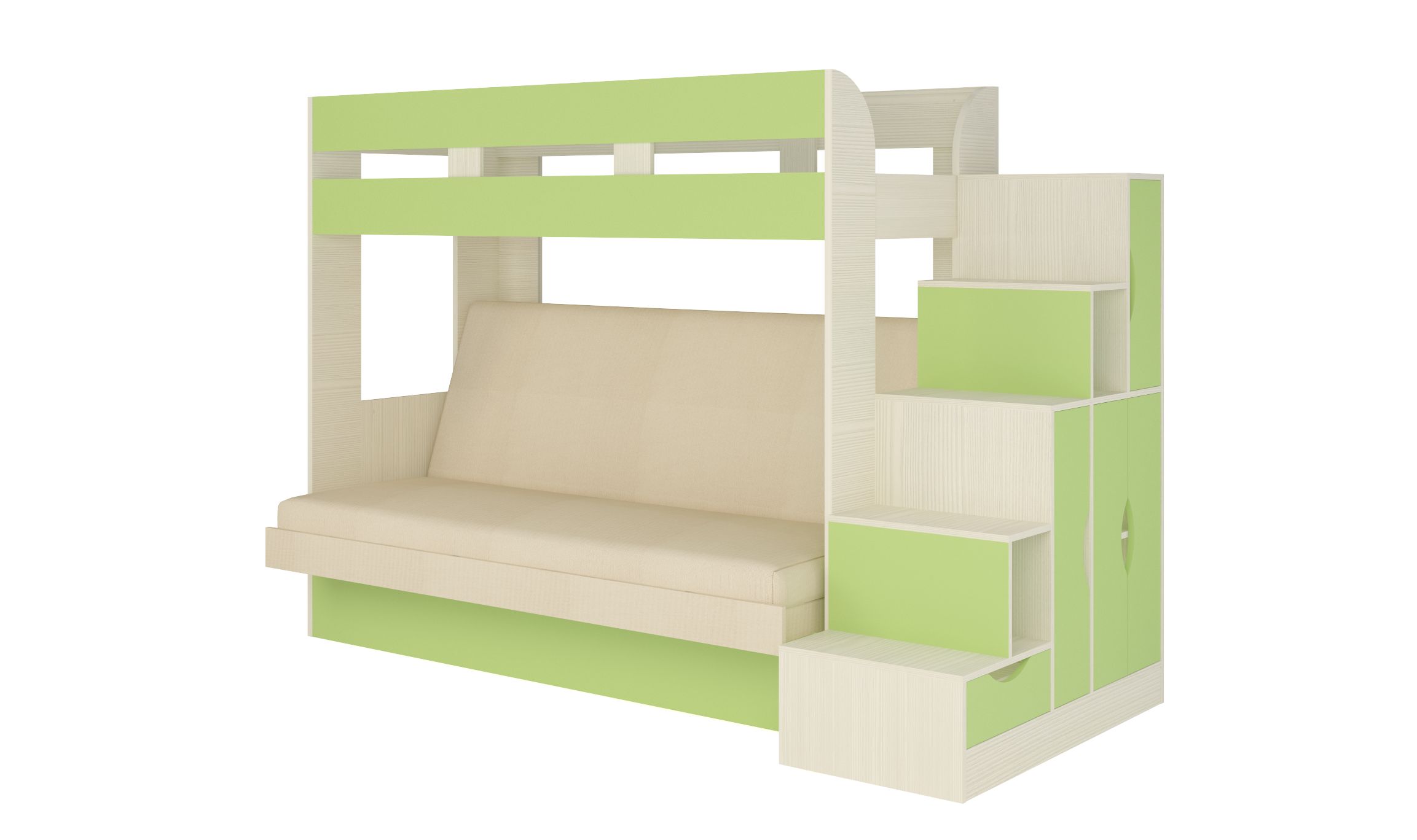 Отзывы о Столплит Двухъярусная кровать с диваном Ева Бодега светлый/Зеленый/Бежевый