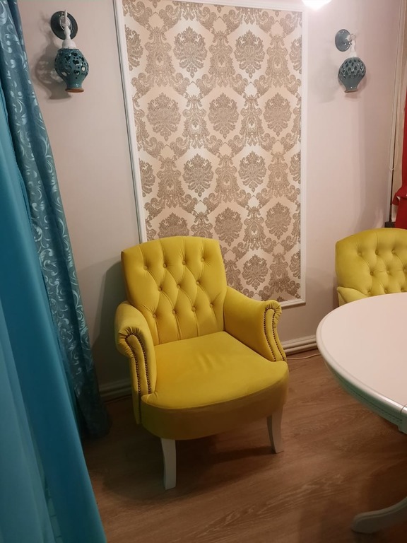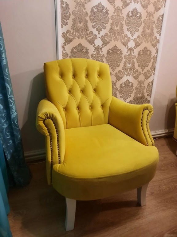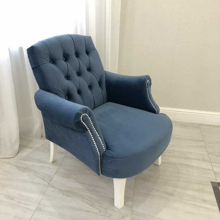 Декор - Гвоздевой молдинг, пуговицы обтянуты тканью. Возможен вариант: вместо пуговиц, изготовление пуговиц-страз.