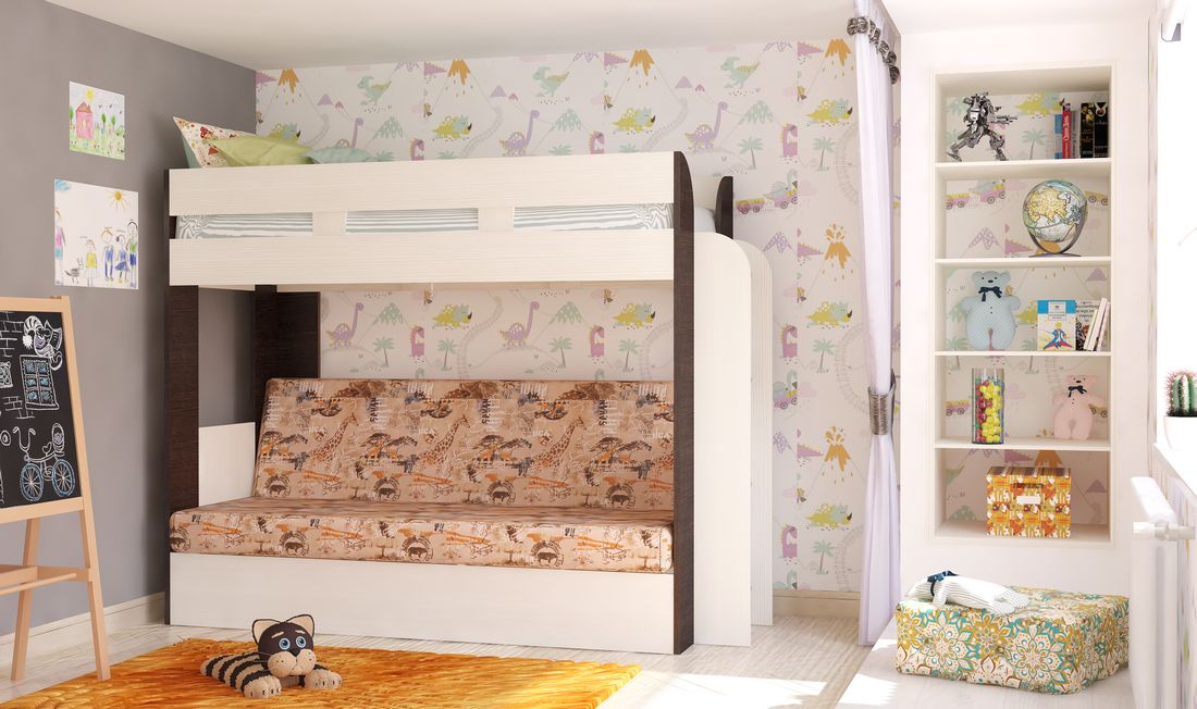 Отзывы о Столплит Двухъярусная кровать с диваном Шерри Бодега светлый/Орех донской/Фиолетовый