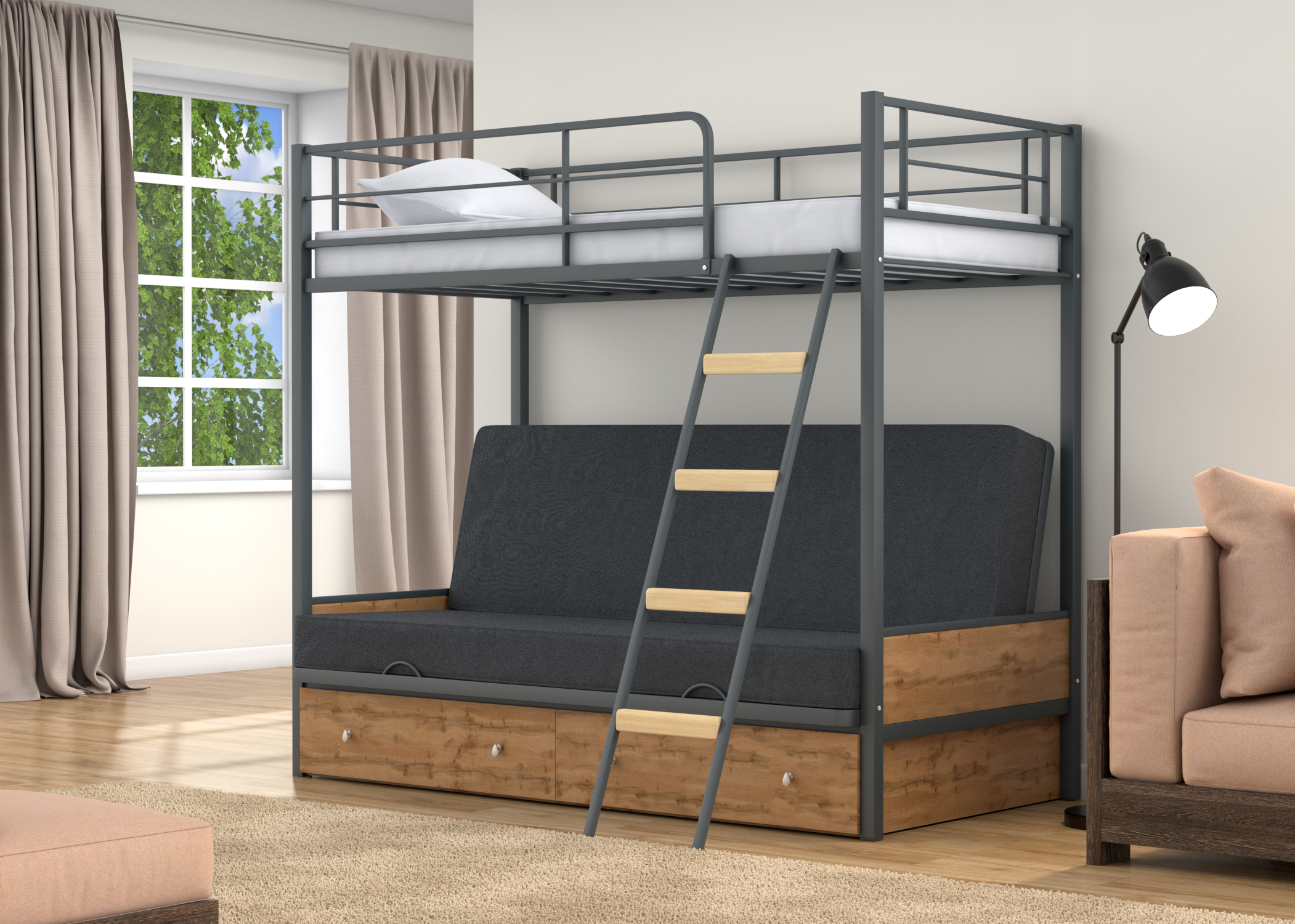 Нижний диван входит в стоимость изделия, верхний матрас приобретается отдельно. Рекомендуемая высота матраса от 12 см.