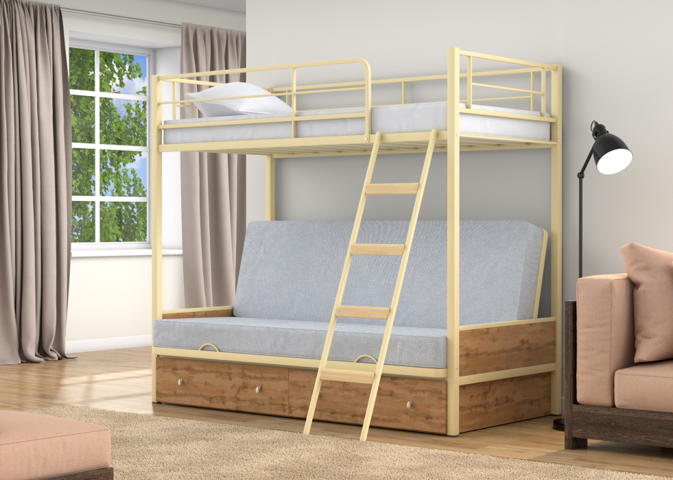 Отзывы о Столплит Двухъярусная кровать-диван Дакар 2 ящики Дуб крафт табак Слоновая кость