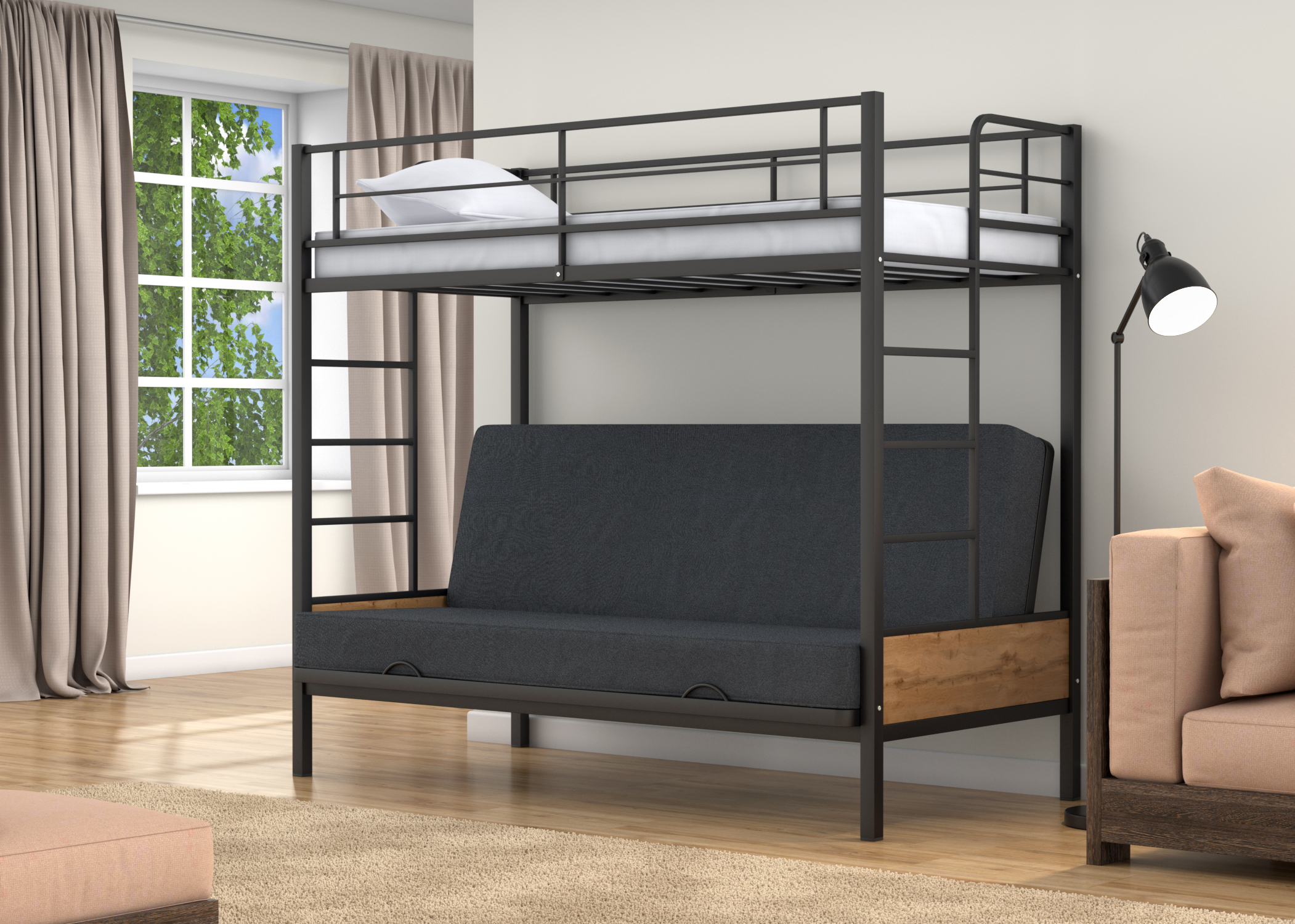 Наконец-то нашёлся тот самый нужный вариант на дачу. Диван-кровать внизу, плюс дополнительное место сверху. Это идеально! Так ещё и удобно, надежная и прочная конструкция внушает доверие. Доставка быстрая, без всяких повреждений. Сборщику спасибо за качественную работу.