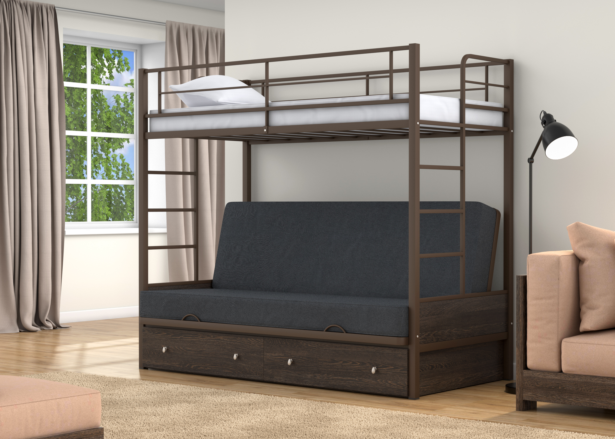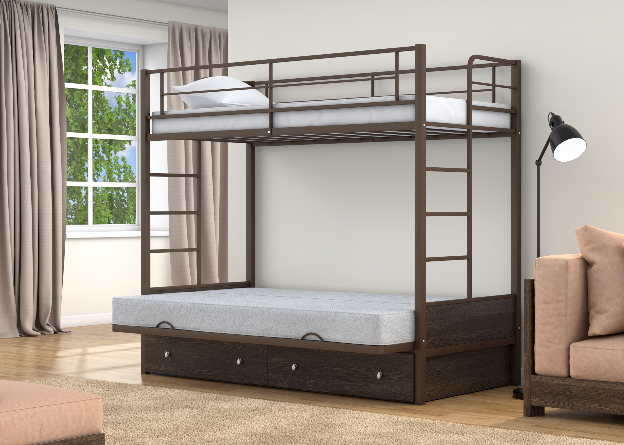 Доброго всем дня! Кроватью очень облегчает жизнь в маленькой комнате, если места мало. Все довольны. Кровать решила проблему с размещением троих человек в одной небольшой комнате. Ну и удобная она. Металл качественный! Ящики вместительные. Рекомендую