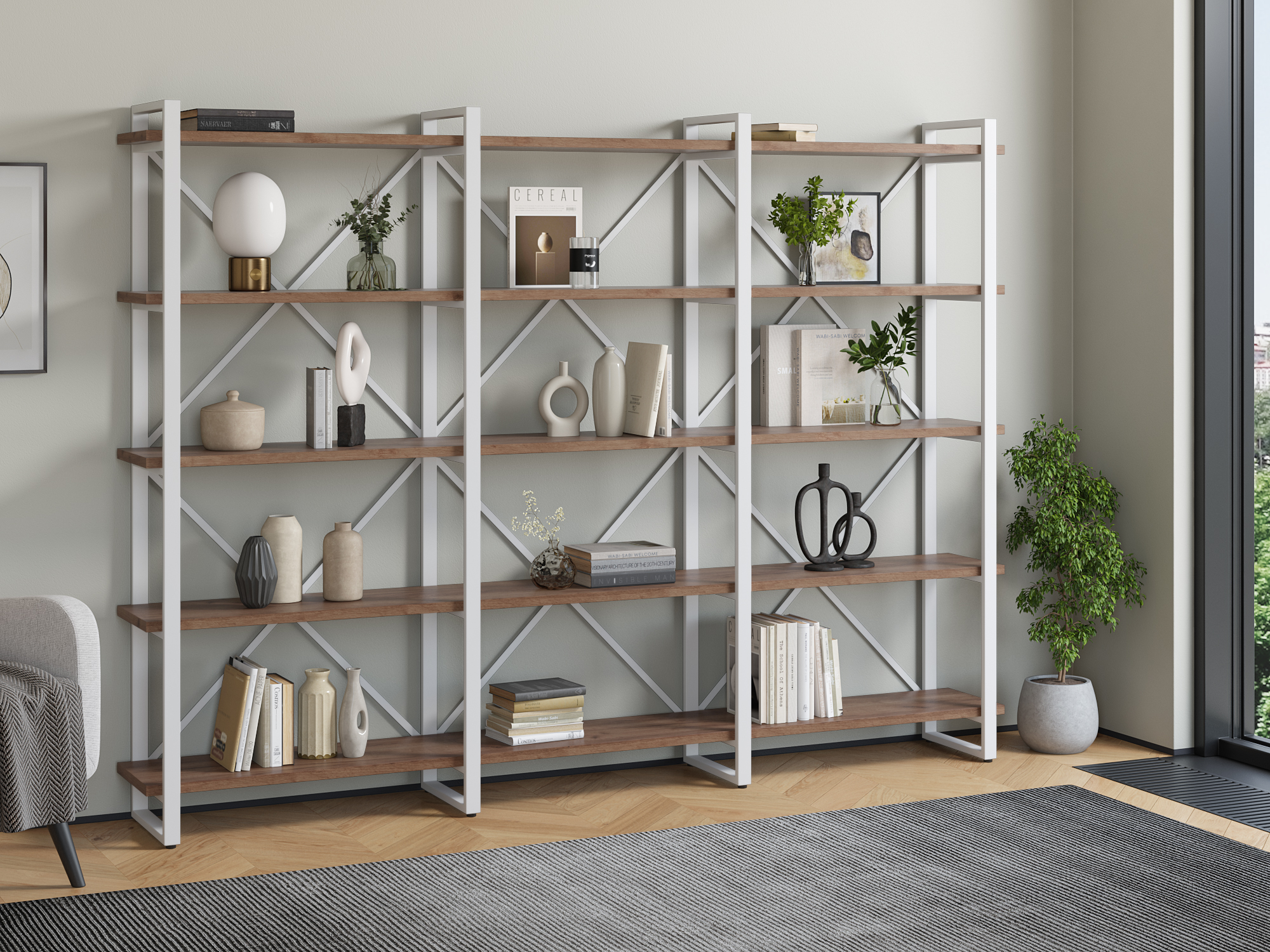 Отзывы о Столплит Стеллаж Айсберг Лофт 240х182-4 белый Дуб/крафт/табак