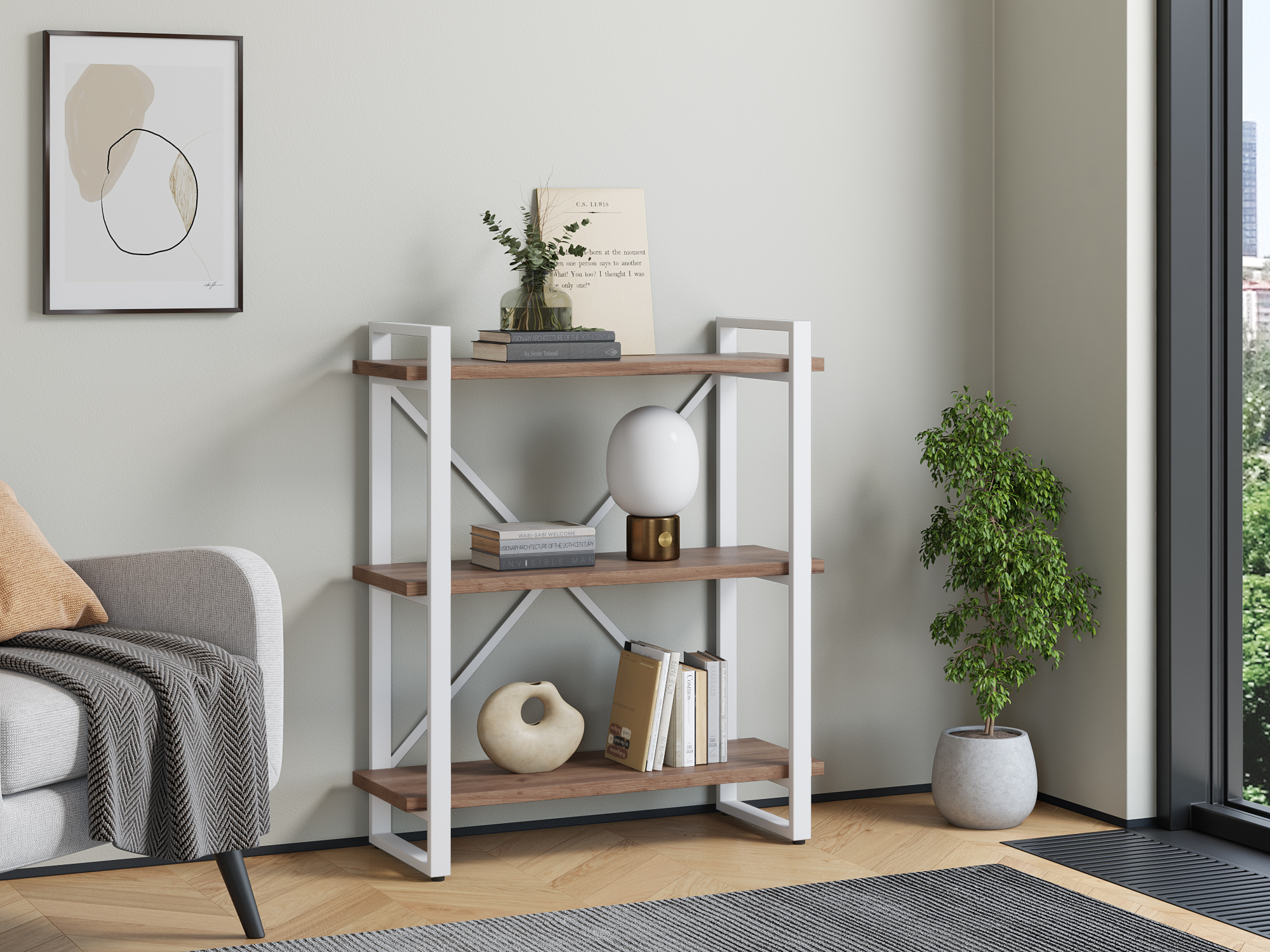 Отзывы о Столплит Стеллаж Айсберг Лофт 80х102-2 белый Дуб/крафт/табак