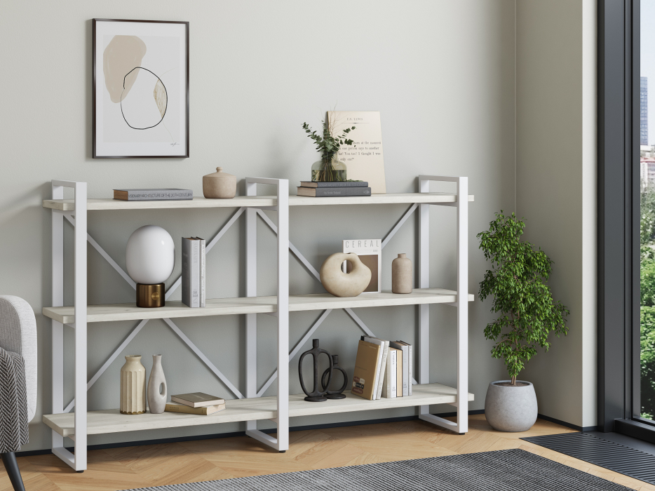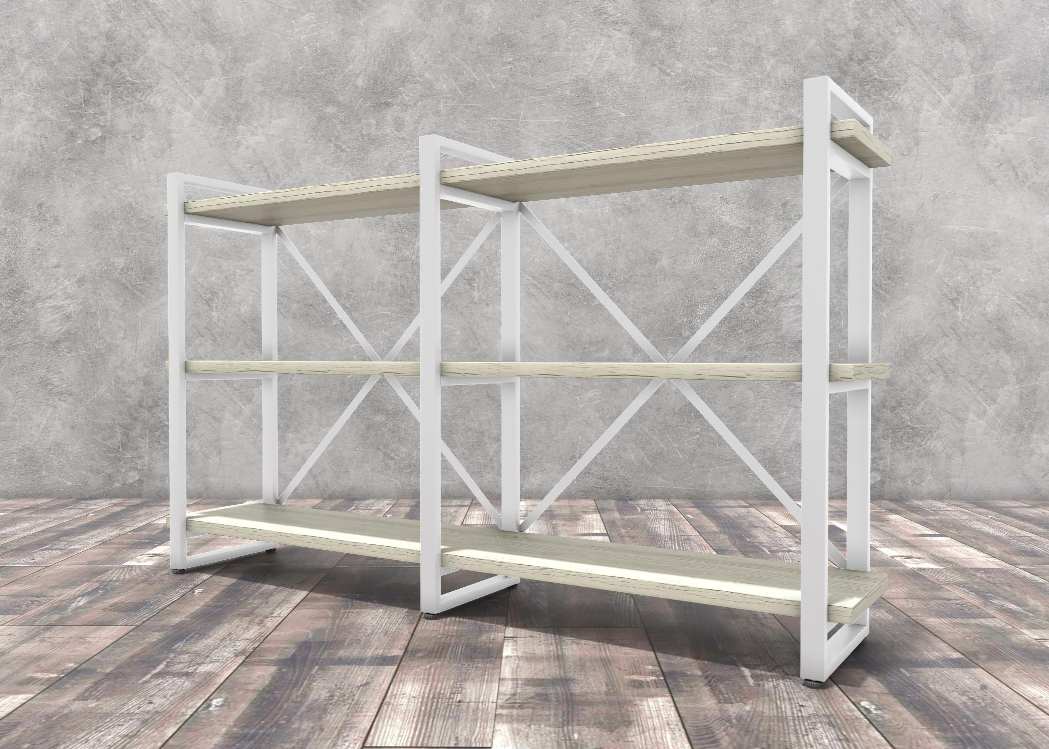 Стеллаж Айсберг Лофт 160х102-3 белый (Дуб крафт белый)