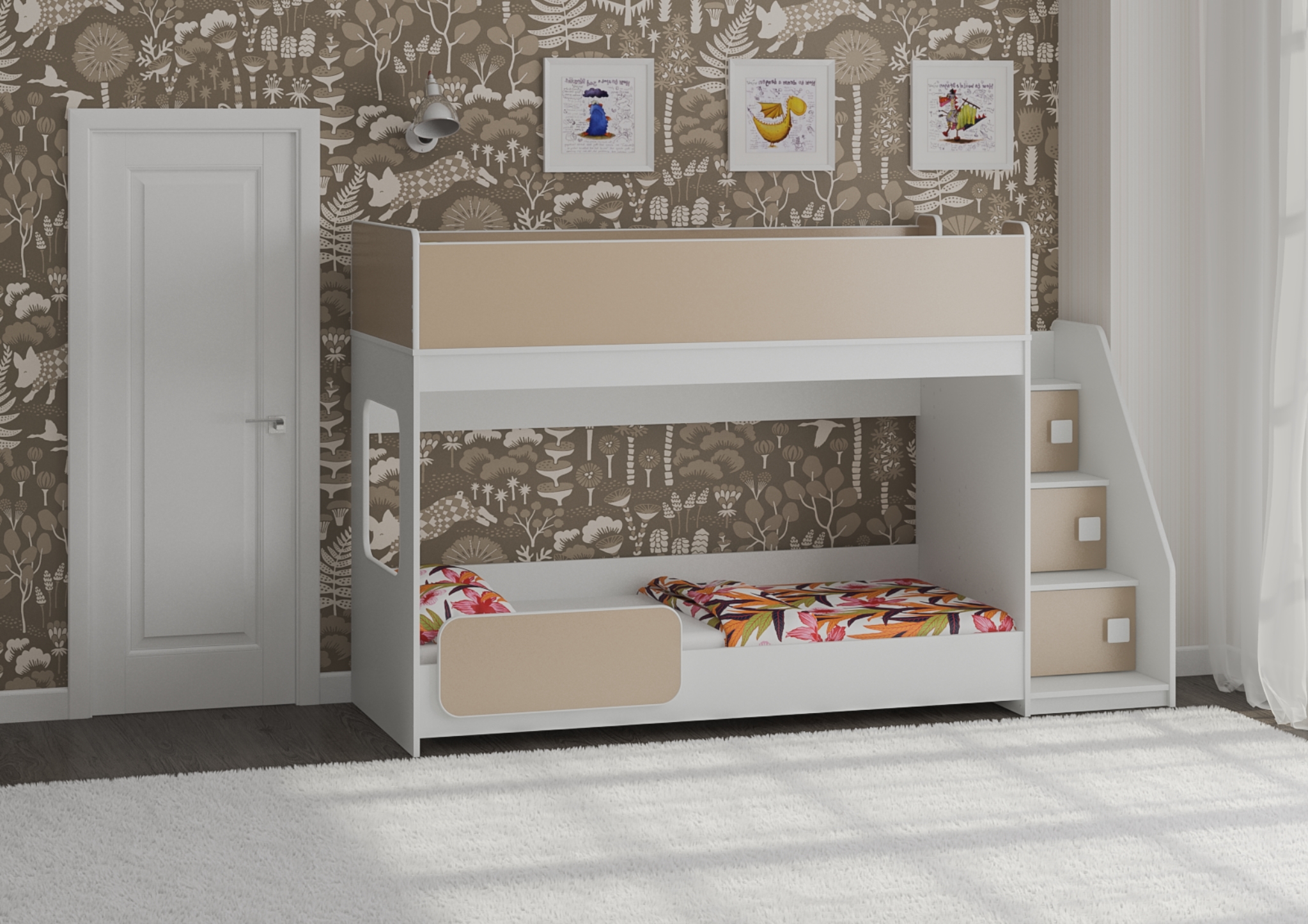 Нижний ярус расположен на высоте всего 230 мм от пола,что позволяет очень маленькому ребёнку комфортно забираться и слезать с кроватки.
