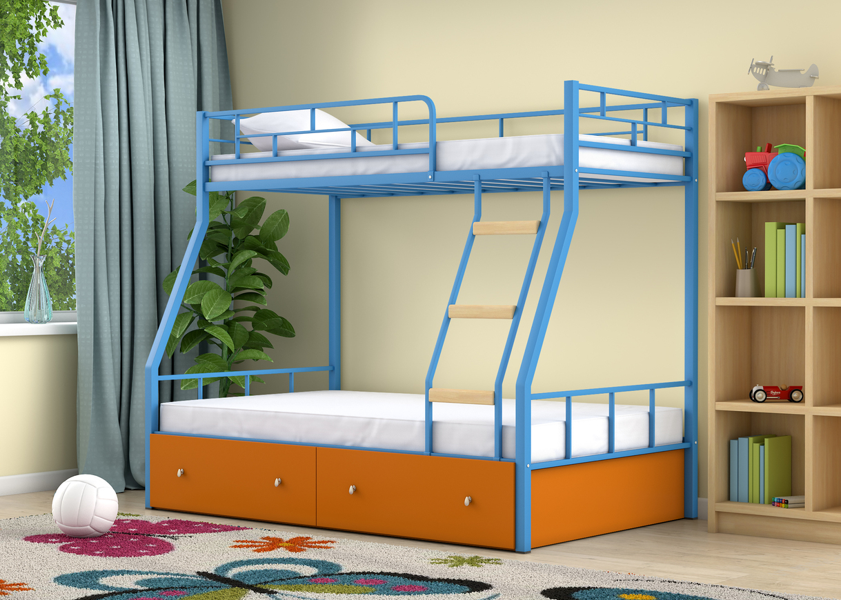 Двухъярусная кровать Радуга ящики оранжевый (Голубой)