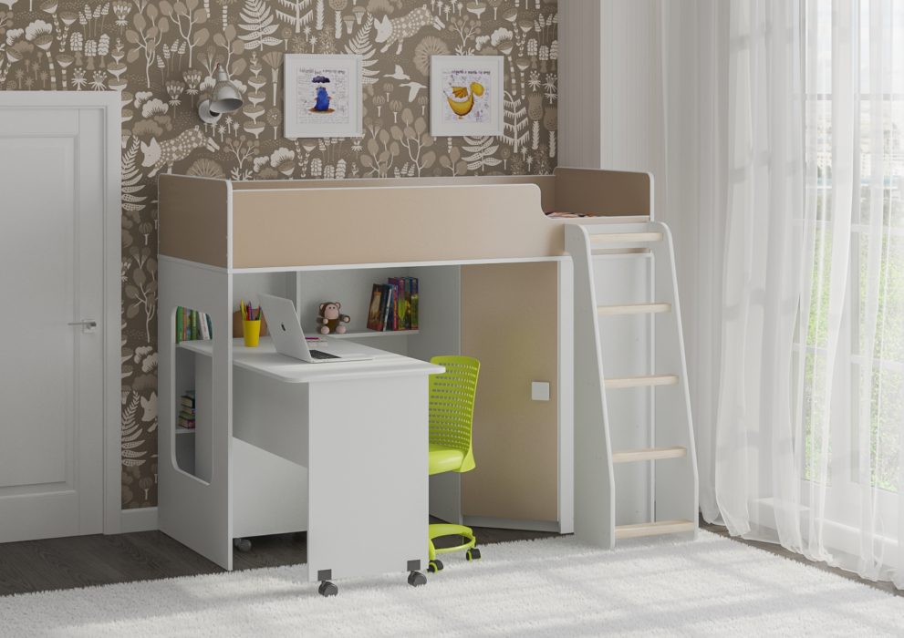 Высота кровати чердака всего 1405 мм, что легко позволит взрослым наблюдать за ребенком на кровати или достать что-то с верхнего яруса.