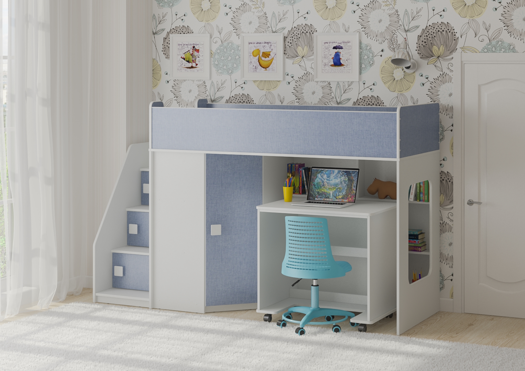 Высота кровати чердака всего 1405 мм, что легко позволит взрослым наблюдать за ребенком на кровати или достать что-то с верхнего яруса.