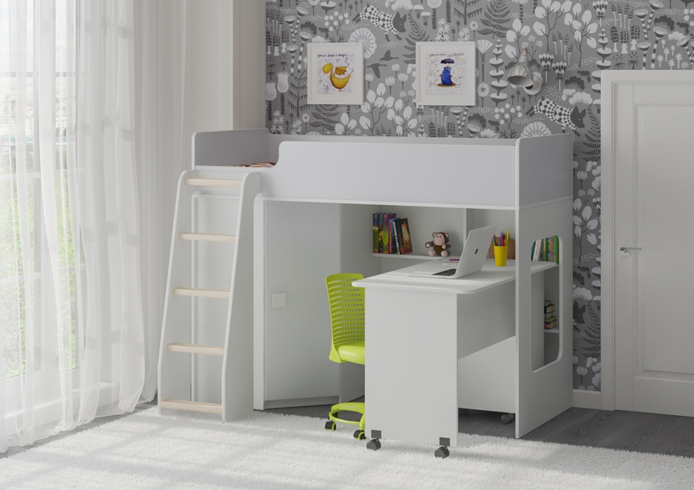 Высота кровати чердака всего 1405 мм, что легко позволит взрослым наблюдать за ребенком на кровати или достать что-то с верхнего яруса.