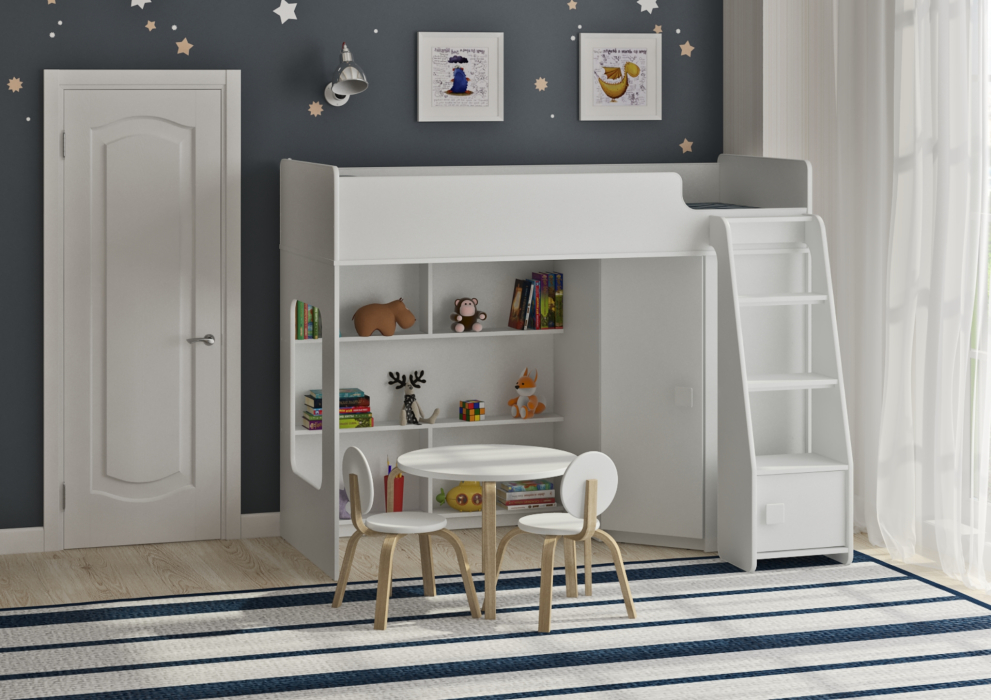 Высота чердака всего 1405мм, что легко позволит взрослым наблюдать за ребенком на кровати или достать что-то с верхнего яруса.