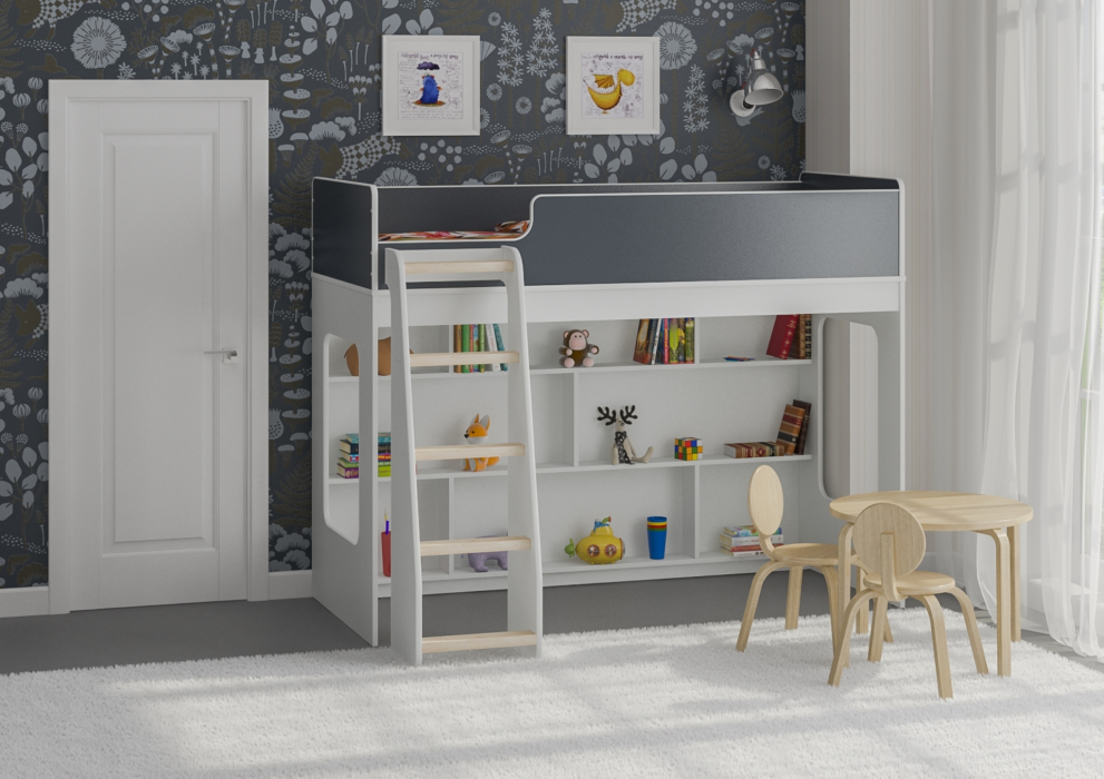 Искали кровать-чердак с игровой зоной, понравилось, что в игровой зоне есть небольшие полочки для игрушек Ребенок постоянно проводит там время. Рекомендую.
