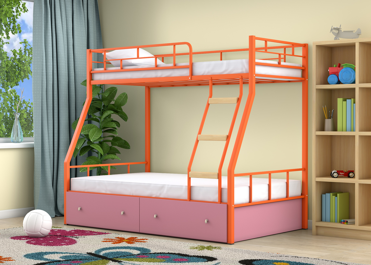 Двухъярусная кровать Радуга ящики розовый (Оранж)