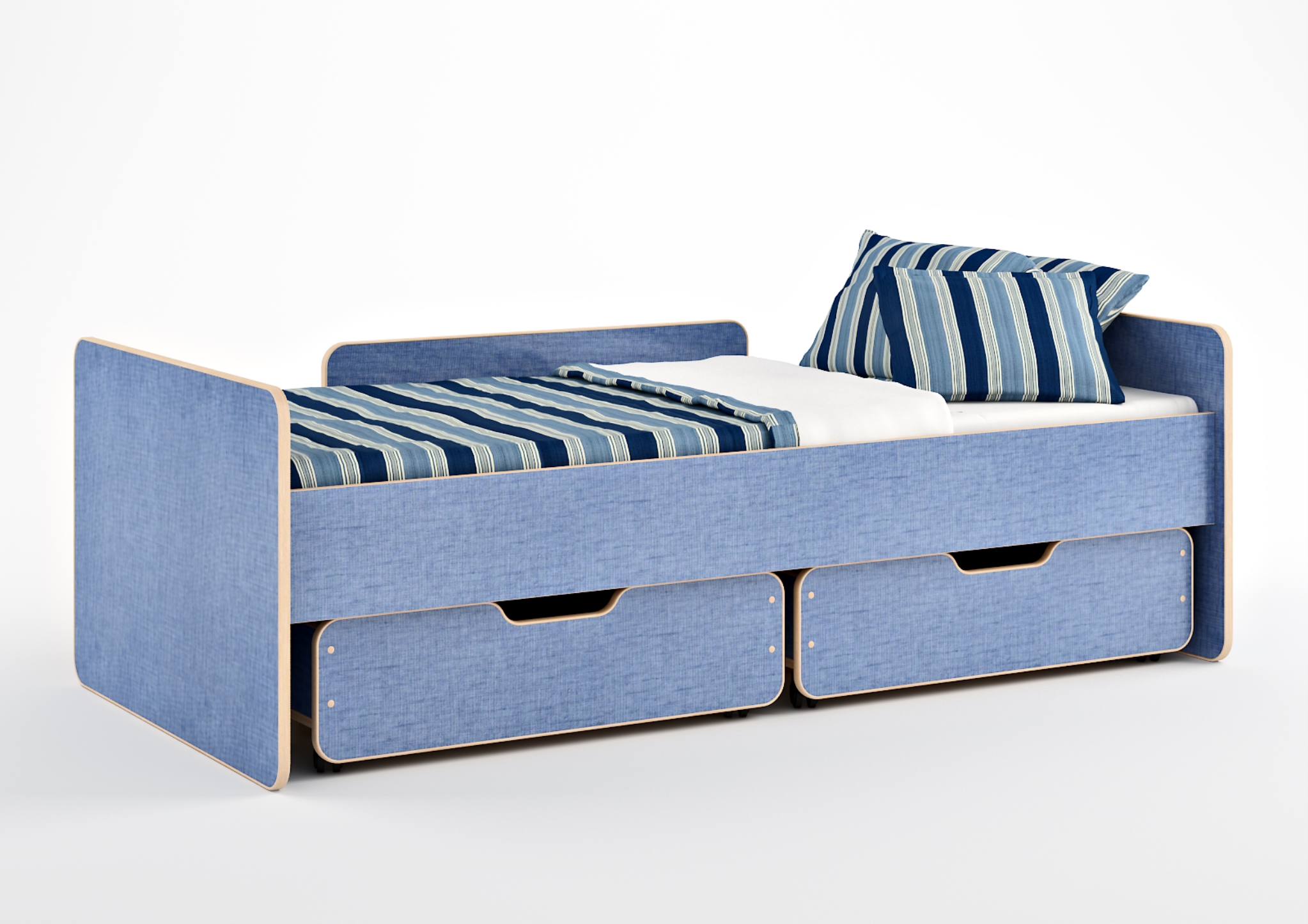 Два вместительных ящика под кроватью удобно выкатываются и закатываются,так как оборудованы колёсиками.Ящики послужат верными помощниками в организации хранения игрушек,белья или иных вещей.