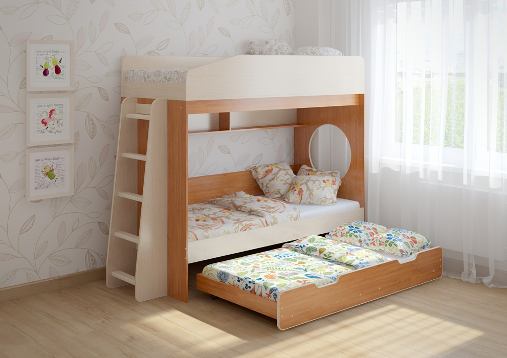 Третье спальное место 1600х800 выдвижной ярус - представлен большим выкатным ящиком, спроектированным таким образом, что может быть использован и как ящик для хранения вещей, и как отдельное спальное место 1600х800!