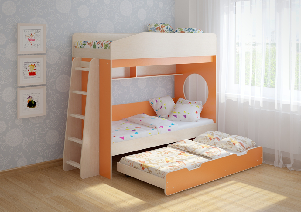 Третье спальное место 1600х800 выдвижной ярус - представлен большим выкатным ящиком, спроектированным таким образом, что может быть использован и как ящик для хранения вещей, и как отдельное спальное место 1600х800!