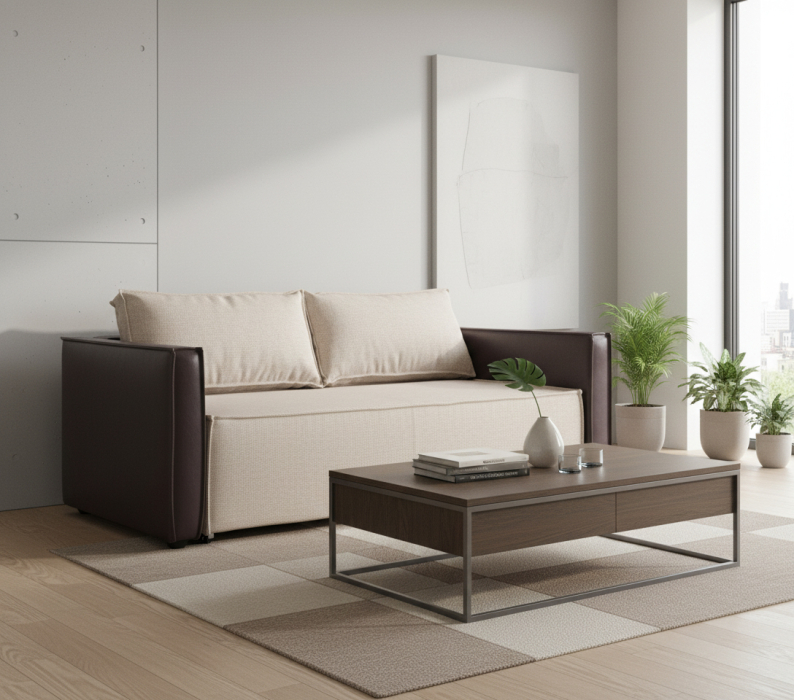 Отзывы о Столплит Диван-кровать Барон аккордеон 140, велюр/экокожа Бежевый