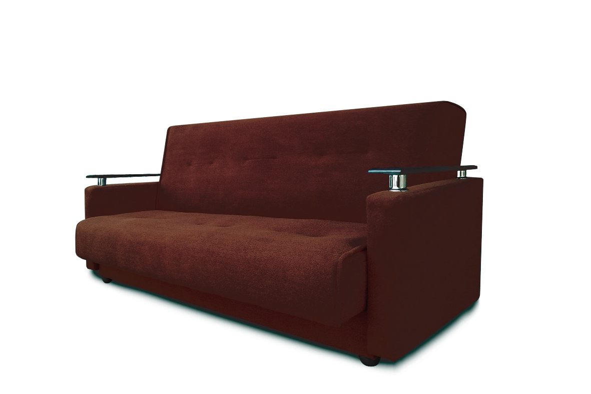 Диван-кровать «Милан Люкс» – превосходная модель мягкой мебели, которая легко станет дизайнерской «изюминкой» гостиной, спальни или дачи. Эта привлекательная модель изготовлена из ДСП, высококачественной фанеры и бруса хвойных пород по лучшим технологиям изготовления мебели, на боковинах имеется декоративная накладка из МДФ темно-коричневого цвета, которая предает дивану более интересный вид. Также диван-кровать «Милан Люкс» дополнен ящиком для белья. Наполнителем является ППУ. Мягкая мебель имеет удобный механизм трансформации «Книжка», справиться с которым может даже ребенок. Каркас: массив дерева(сосна), ДСП, фанера