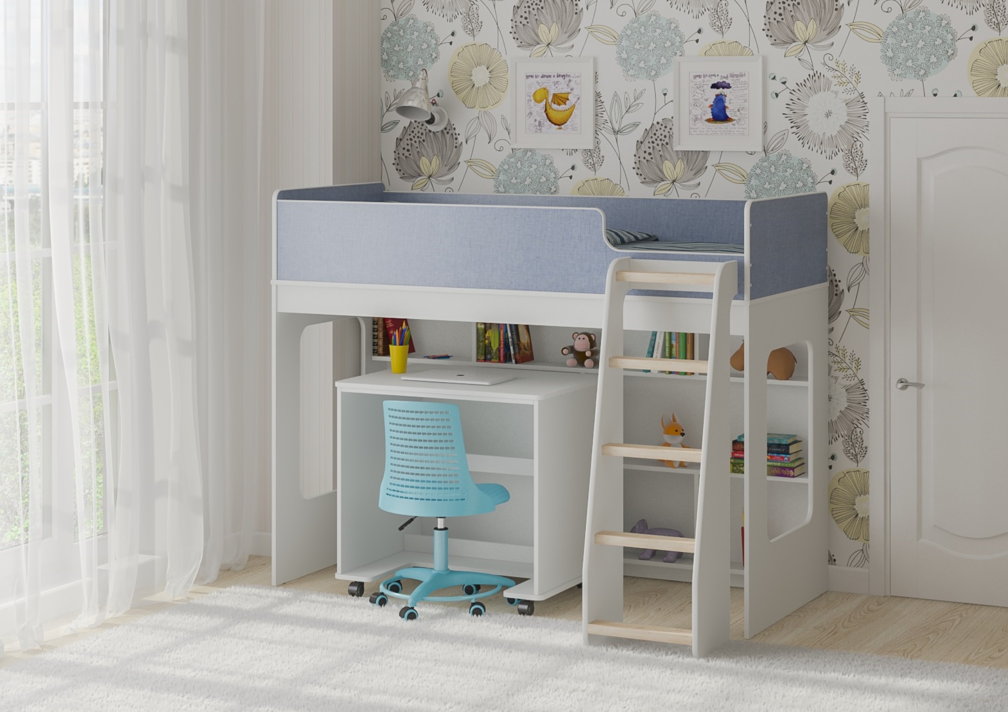 Внизу располагается игровая зона с полками – свой уголок для ребенка.