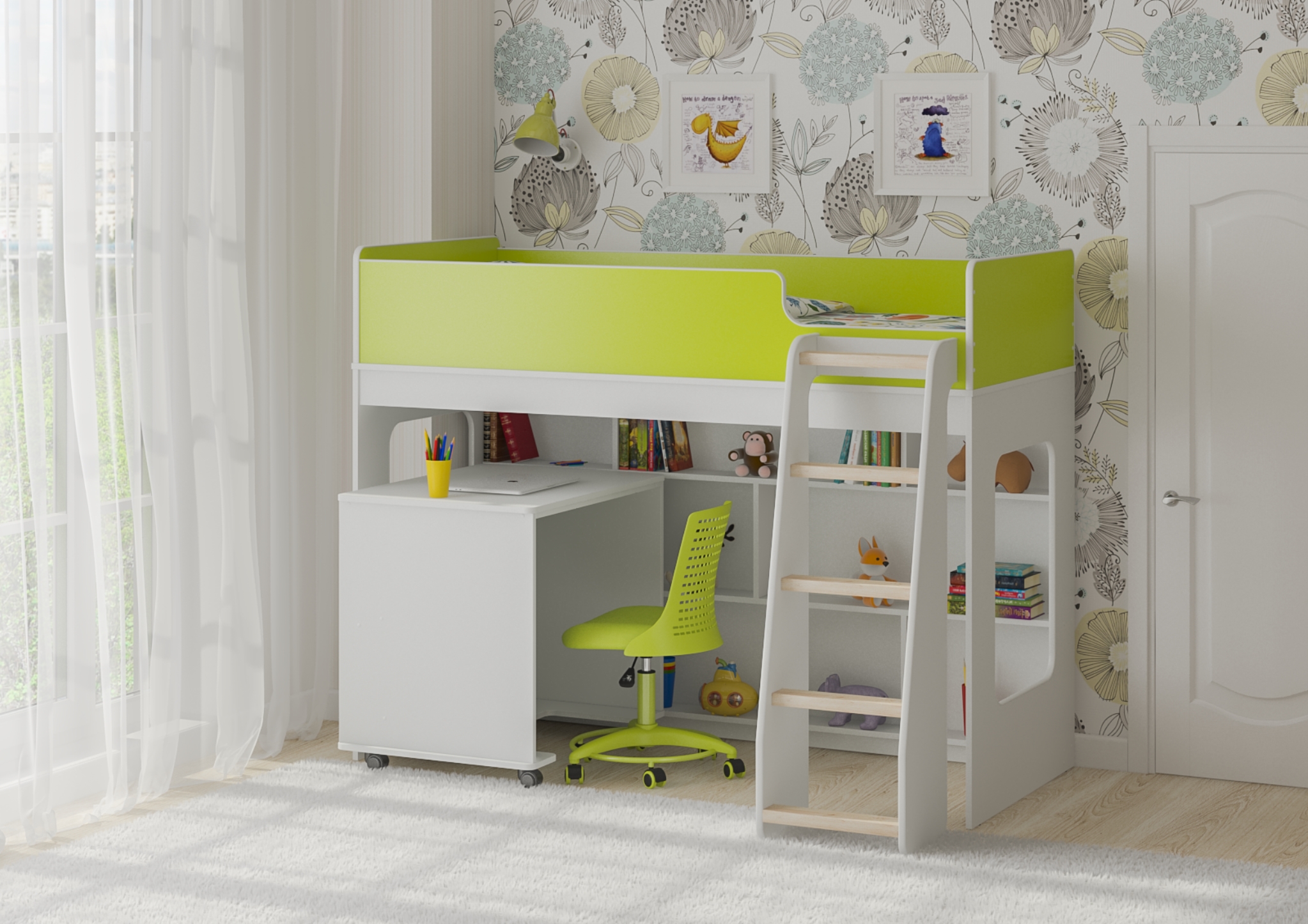Кровать чердак Легенда 42.3.4 (Белый/Лайм)