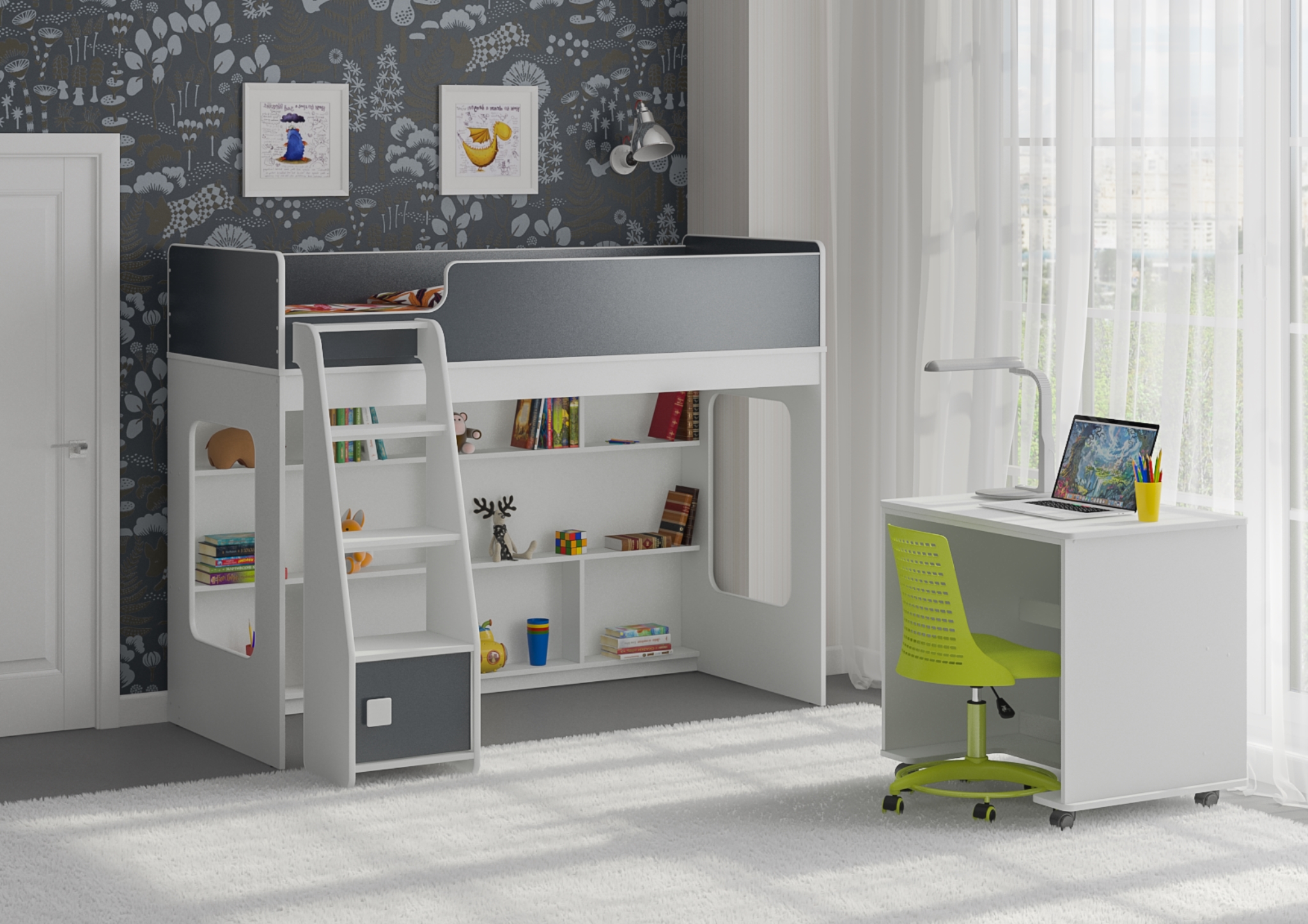Кровать чердак Легенда 42.3.6 (Графит/Белый)