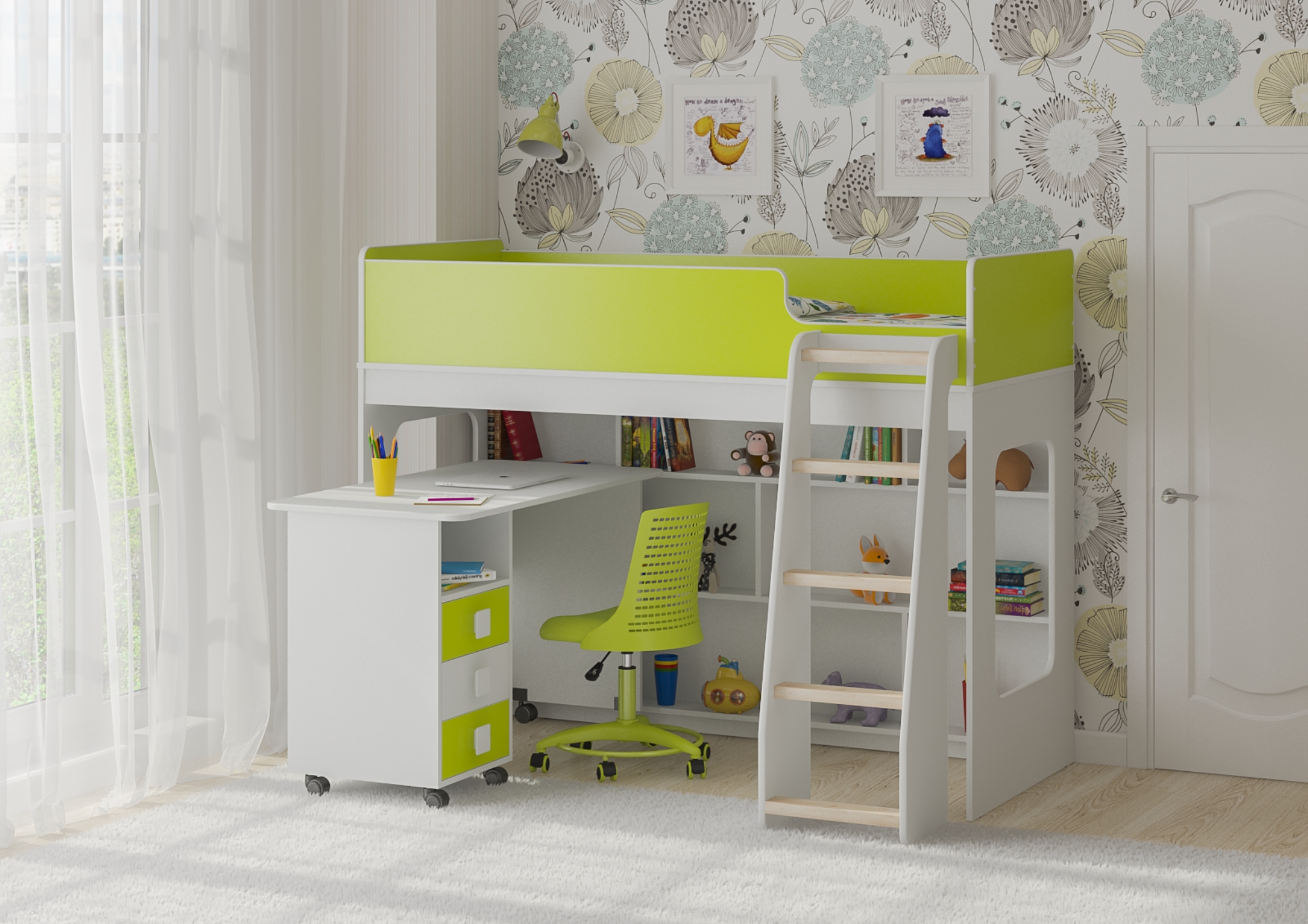 Кровать чердак Легенда 42.3.5 (Белый/Лайм)